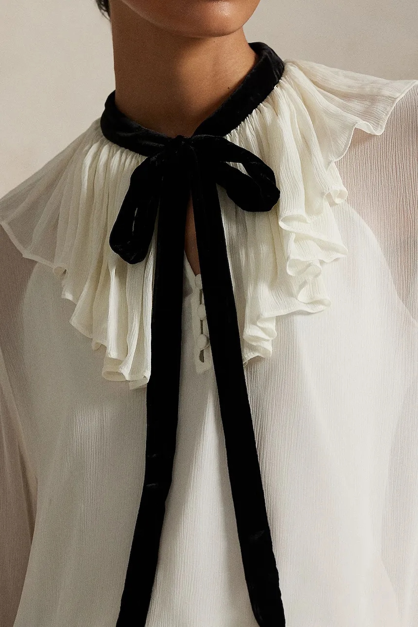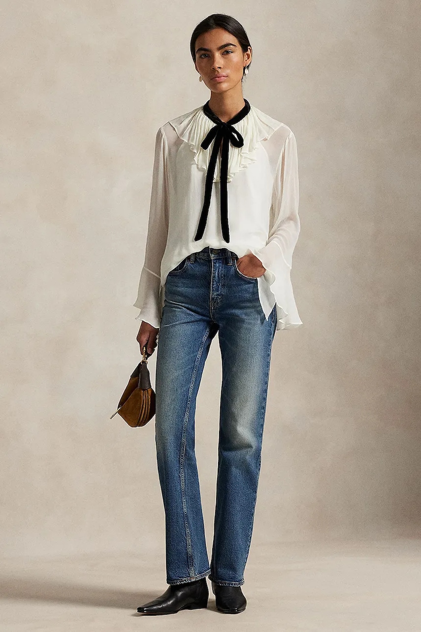 Polo Ralph Lauren koszula damska kolor biały relaxed z wiązanym dekoltem 211B14781