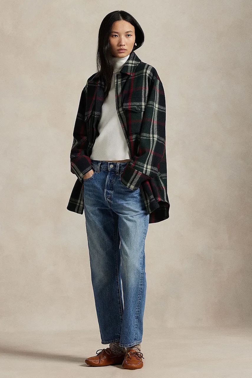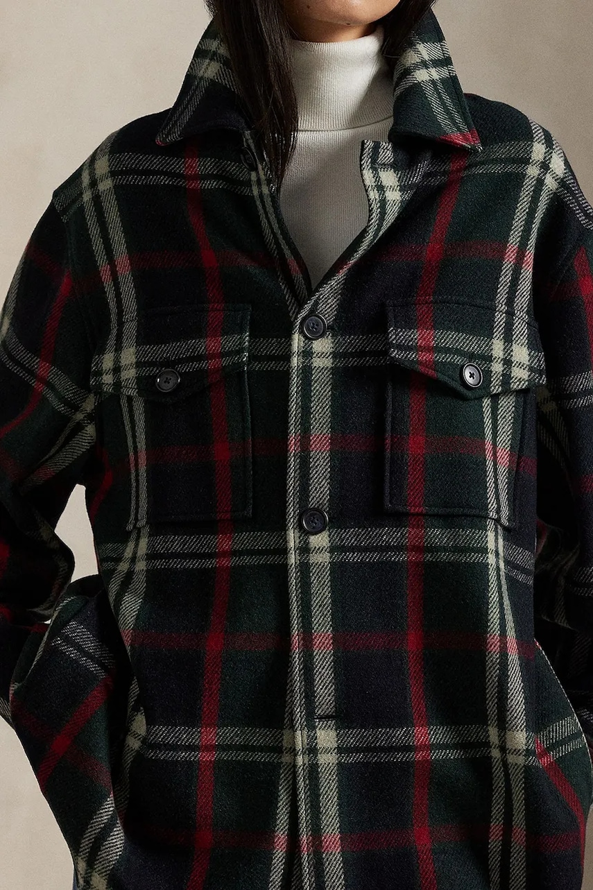 Polo Ralph Lauren koszula z dodatkiem wełny Woven Sport damska kolor zielony relaxed z kołnierzykiem klasycznym 211971524