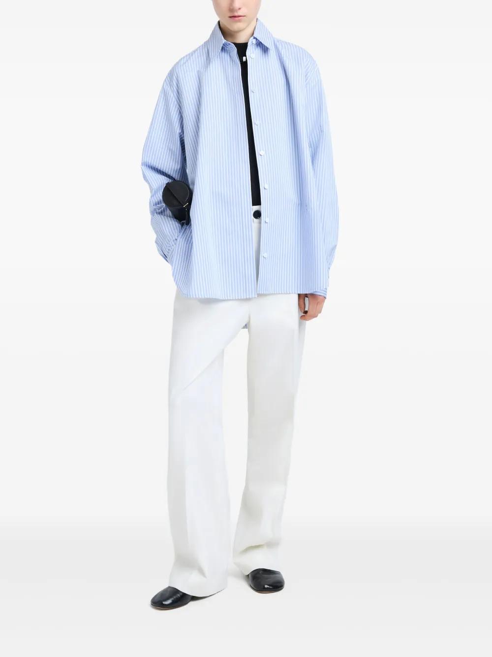 sky blue front button placket side slits buttoned cuffs vertical stripe pattern