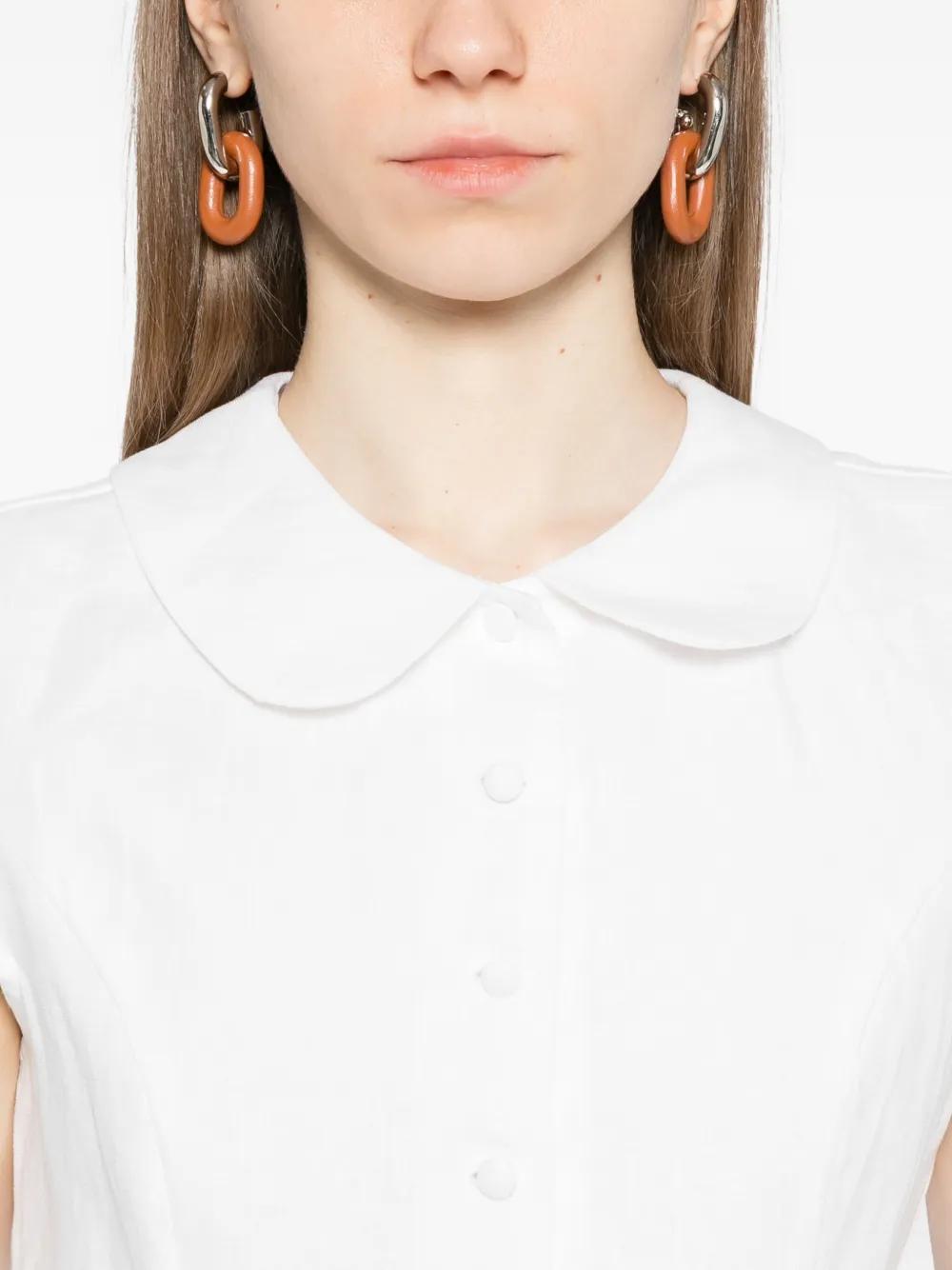 white cotton blend poplin texture straight-point collar front button fastening long sleeves buttoned cuffs flared cuffs elasticated hem cropped