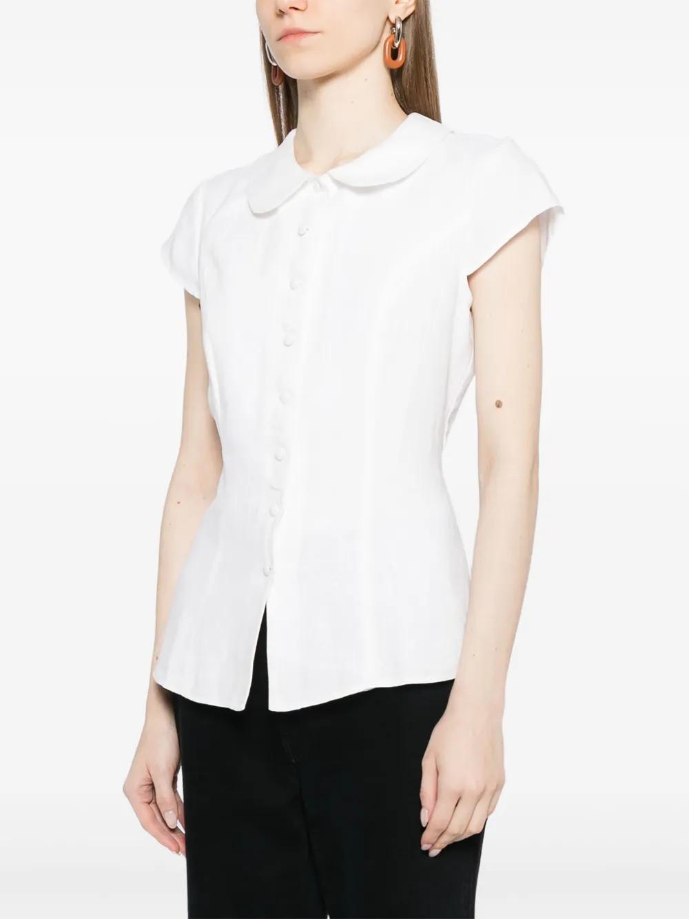 white stretch organic cotton straight-point collar front button fastening drop shoulder long sleeves buttoned cuffs curved hem
