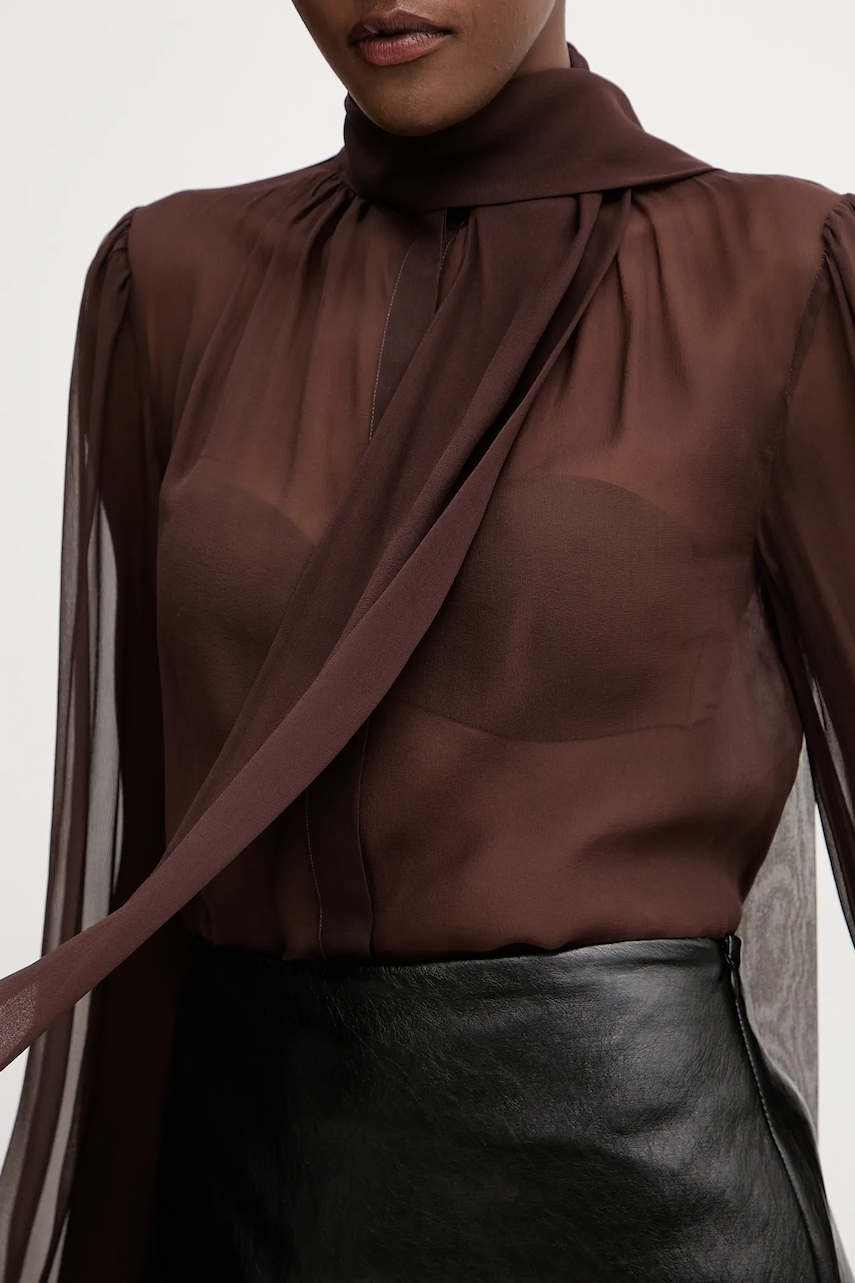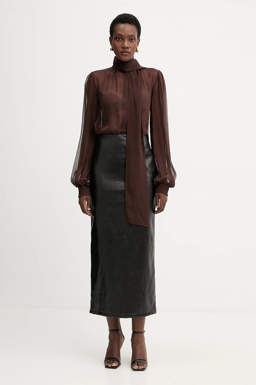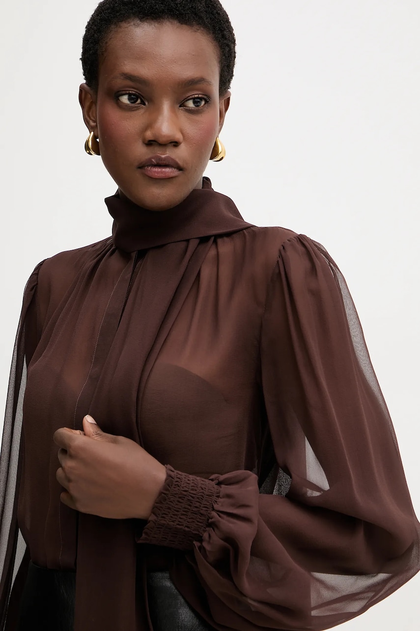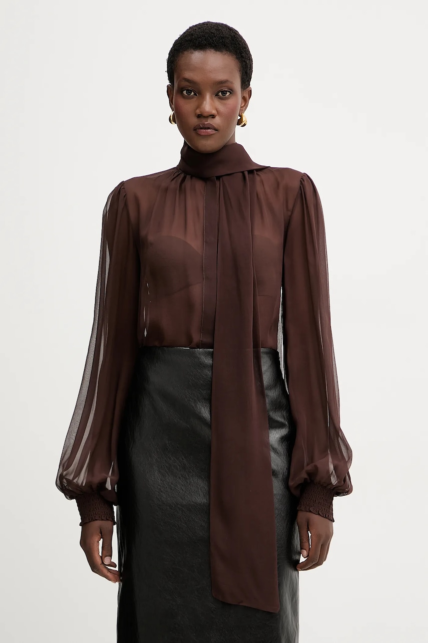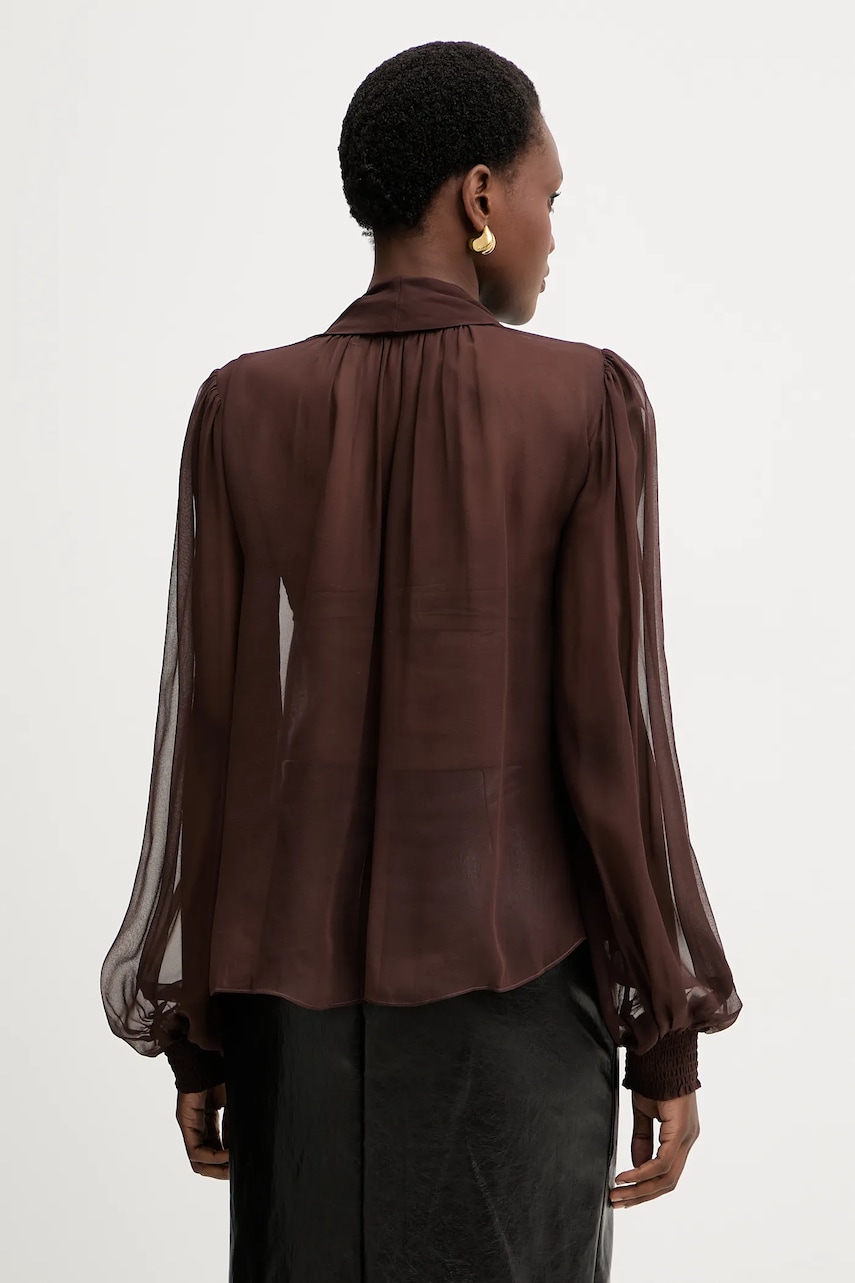 Retrofete koszula jedwabna Hasli damskie kolor brązowy regular z wiązanym dekoltem HL25-10953
