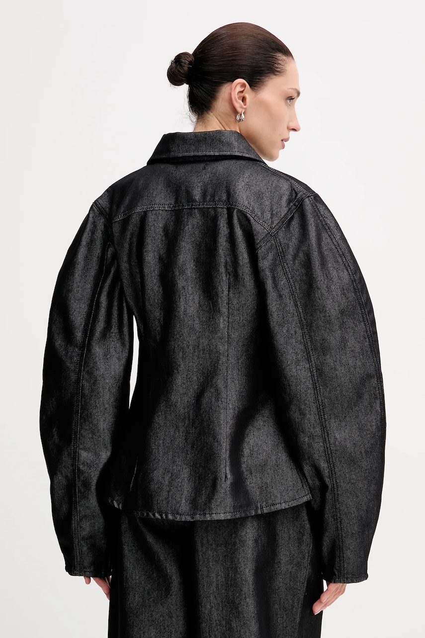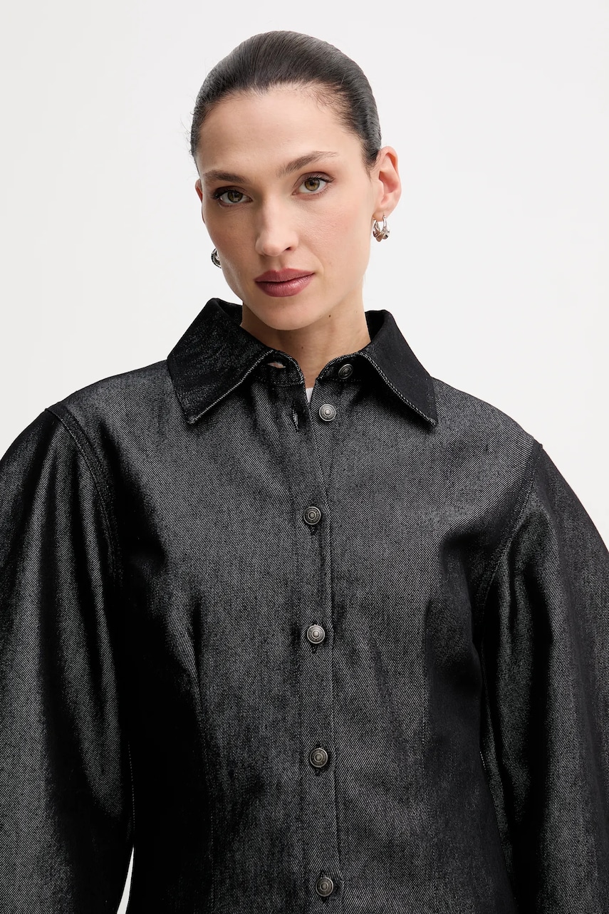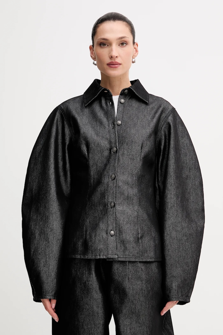Rotate koszula jeansowa damska kolor czarny regular z kołnierzykiem klasycznym 114961100