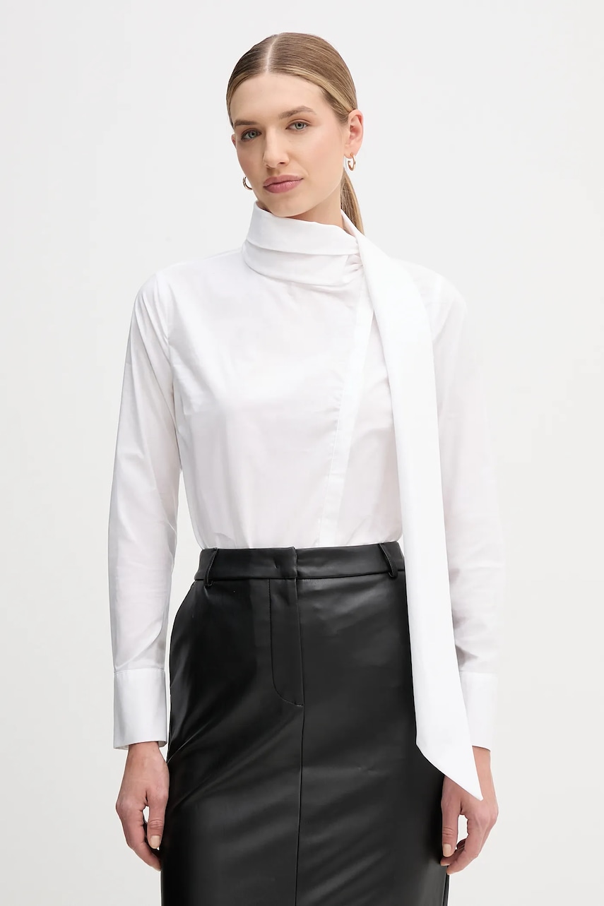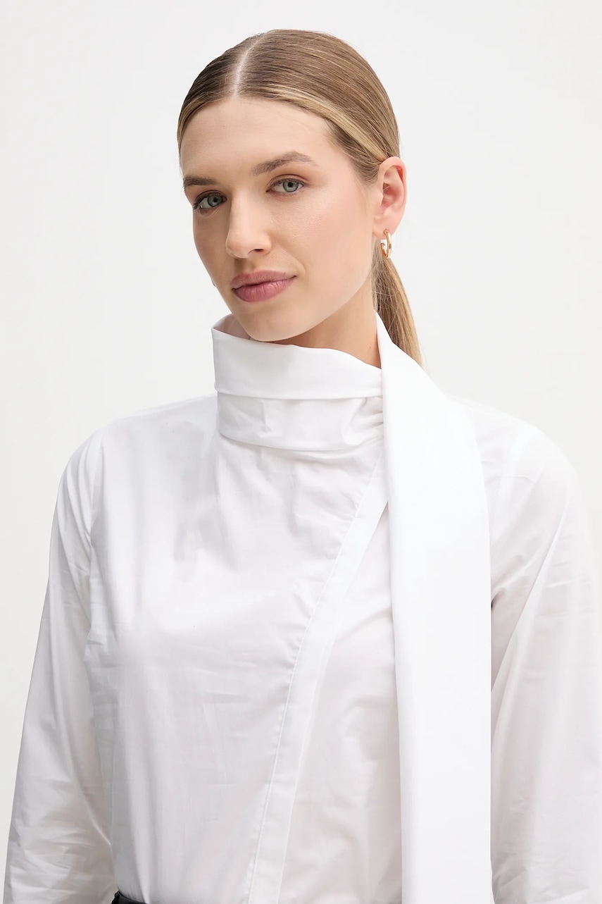 Sandro Ferrone koszula damska kolor biały regular z wiązanym dekoltem S7YBFMOSCA