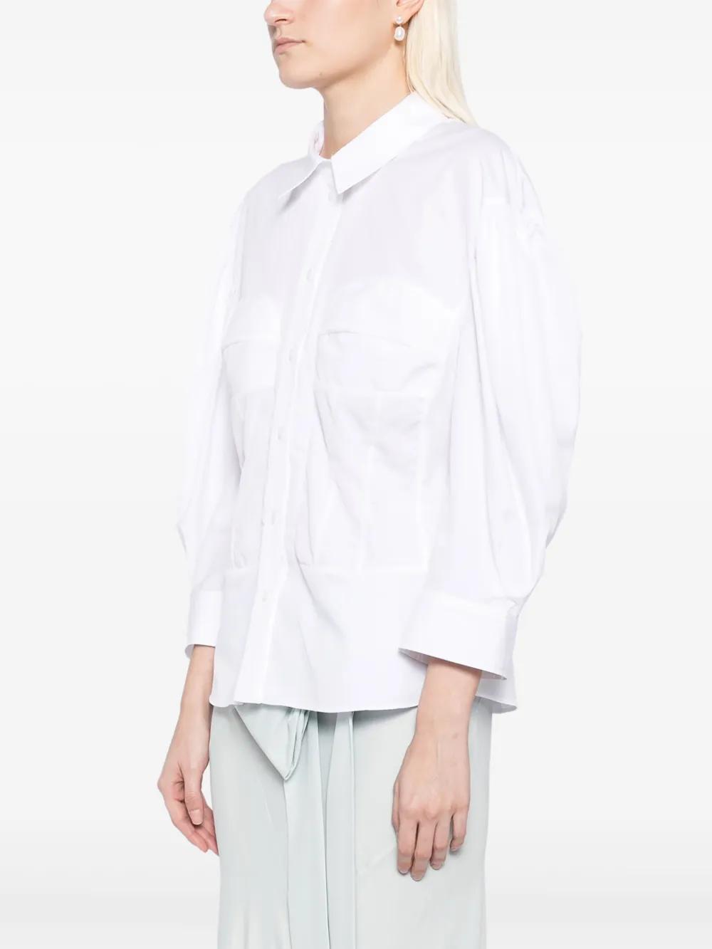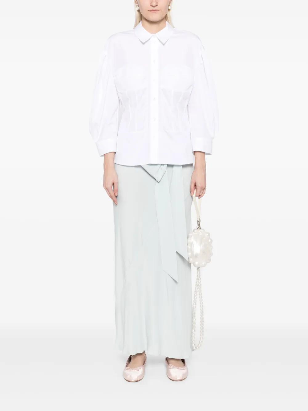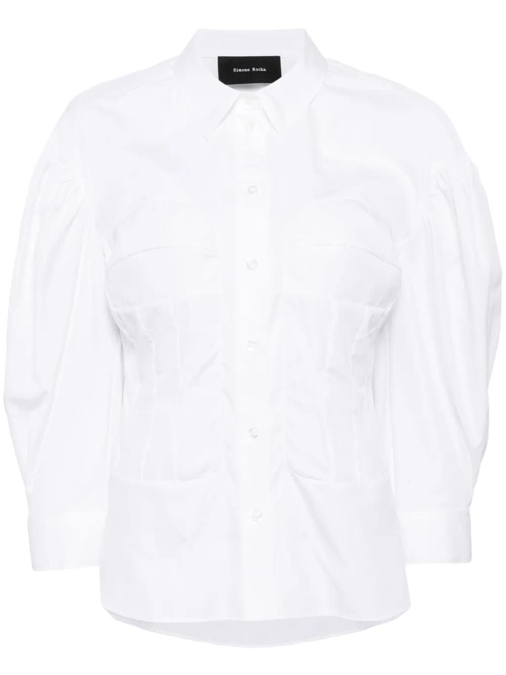 off-white cotton poplin texture integrated corset seaming long sleeves bracelet sleeves slim fit straight hem