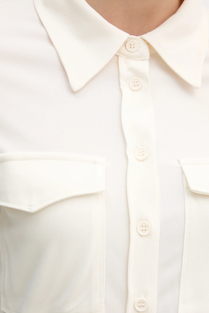 - Koszula w fasonie regular delikatnie dopasowuje się do sylwetki, ale nie podkreśla jej nadmiernie, zapewniając swobodę ruchów. - Model z kołnierzykiem. - Zapięcie na guziki. - Długi rękaw. - Kieszonki na piersi. - Długość rękawa: 63 cm. - Długość: 63 cm. - Szerokość pod pachami: 43 cm. - Wymiary podane dla rozmiaru: S.