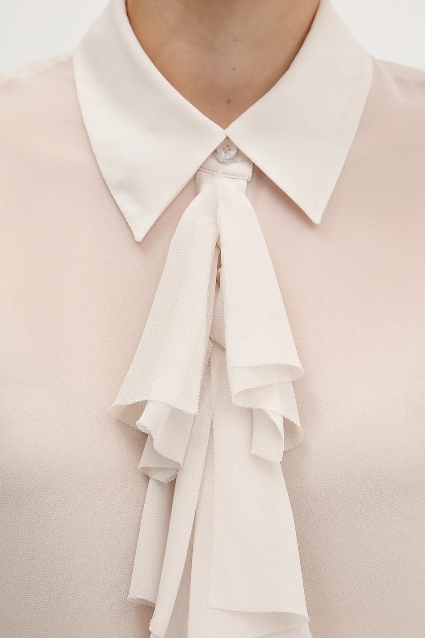- Ten produkt został częściowo uszyty z poliestru pochodzącego z recyklingu. - Prosty, nie blokujący ruchów fason. - Model z kołnierzykiem. - Mankiety zapinane na guziki. - Model z ozdobną falbaną. - Kryte zapięcie na guziki. - Cienka, nieelastyczna tkanina. - Długość rękawa: 62 cm. - Długość: 63 cm. - Szerokość pod pachami: 50 cm. - Wymiary podane dla rozmiaru: S.