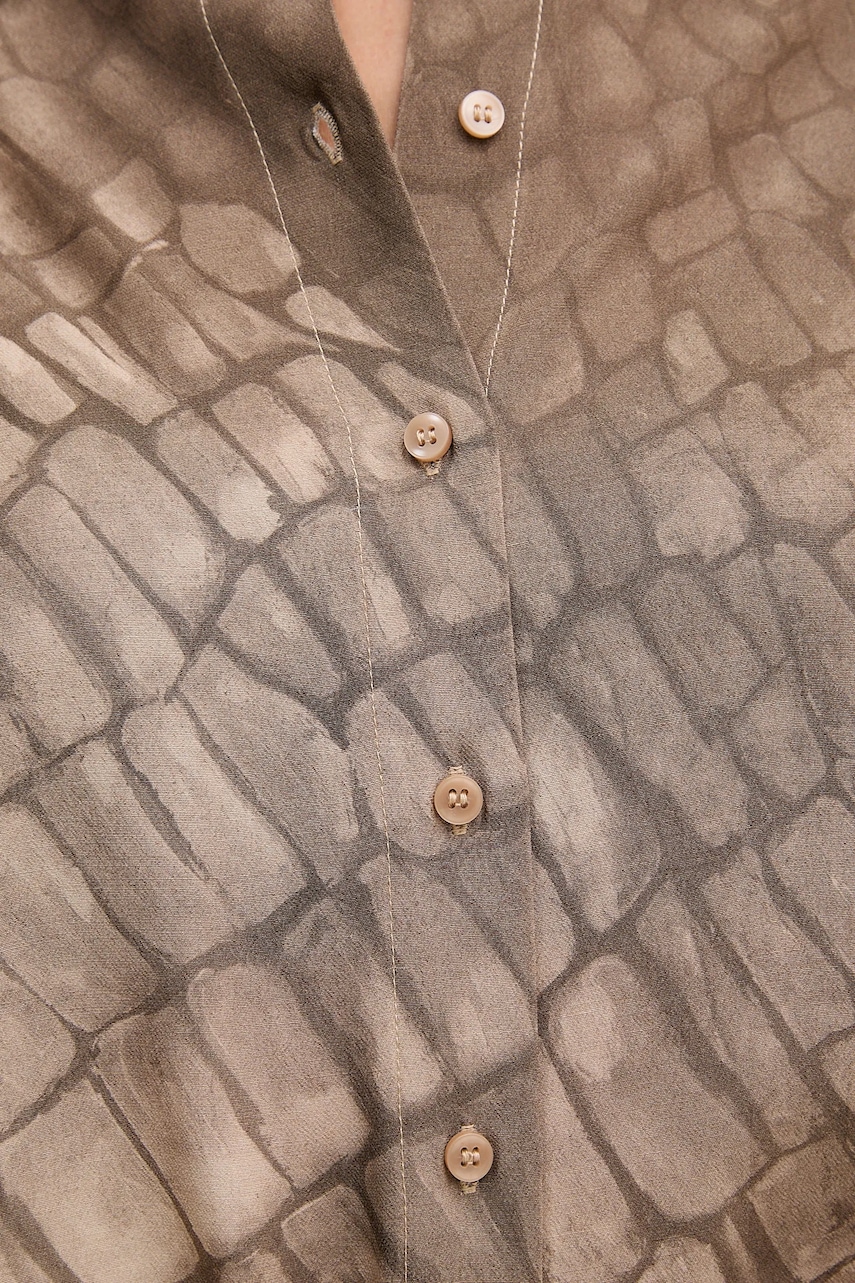 - Luźny krój z opuszczoną linią ramion. - Zapięcie na guziki. - Mankiety zapinane na guziki. - Cienka, nieelastyczna tkanina. - Długość rękawa: 55 cm. - Długość: 67 cm. - Szerokość pod pachami: 64 cm. - Wymiary podane dla rozmiaru: S.