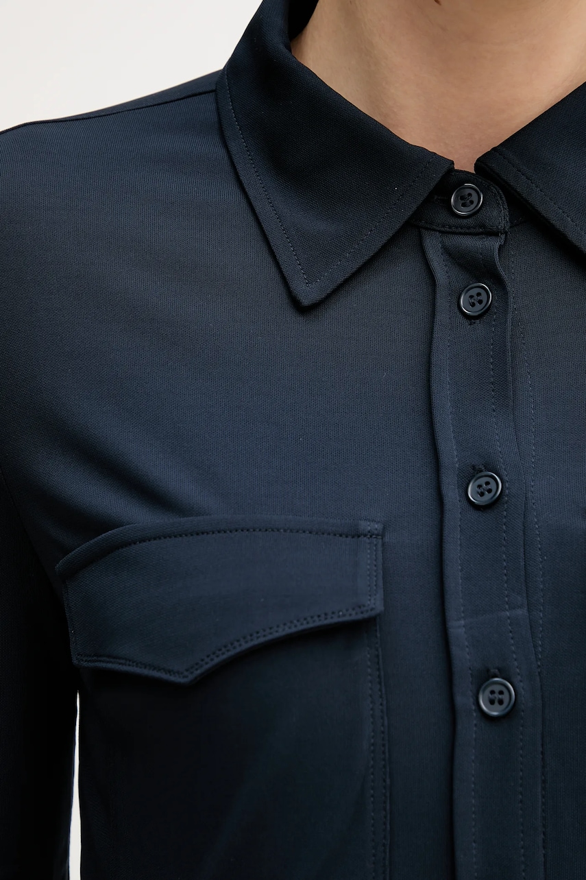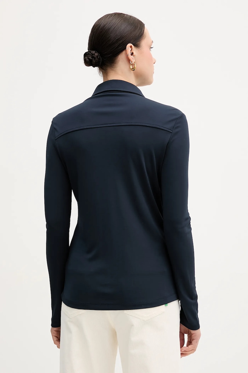 Sisley koszula damska kolor granatowy regular z kołnierzykiem klasycznym 54HXLQ09M
