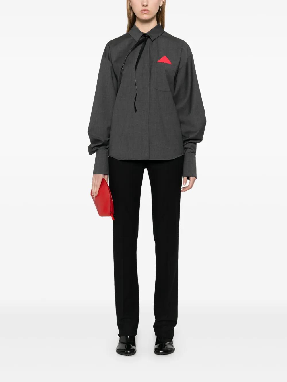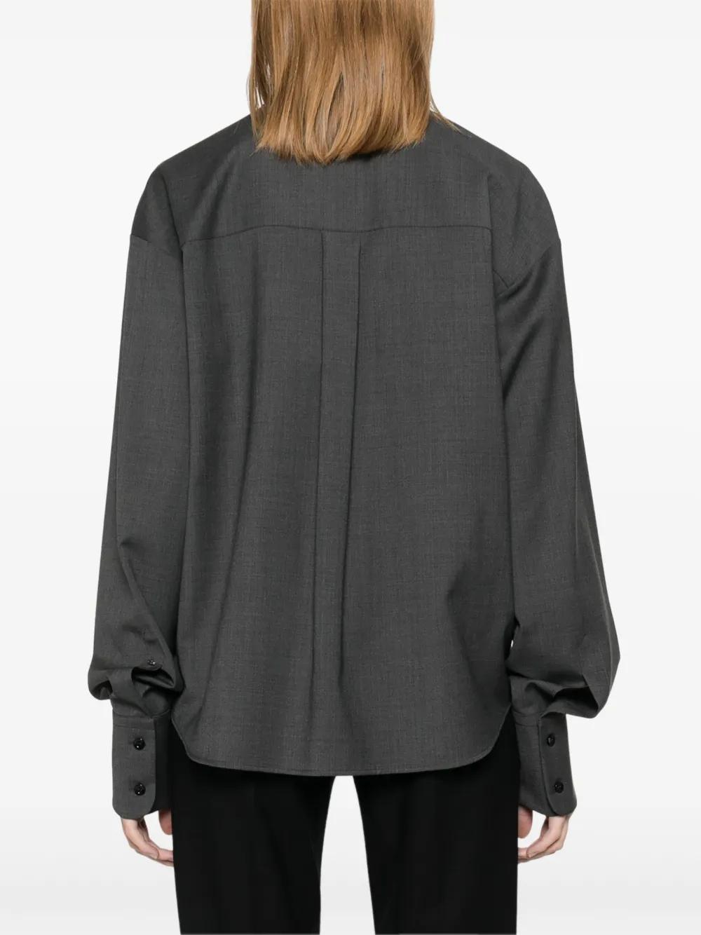 grey virgin wool interlock twill weave mélange effect concealed front button fastening classic collar detachable neck strap drop shoulder extra-long sleeves buttoned cuffs chest patch pocket pocket square box-pleat detail curved hem