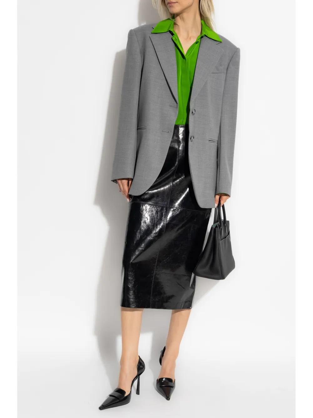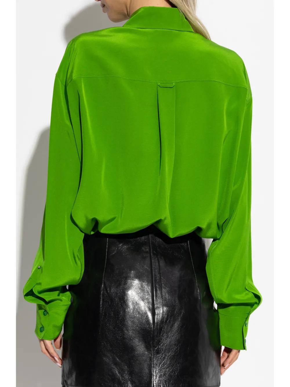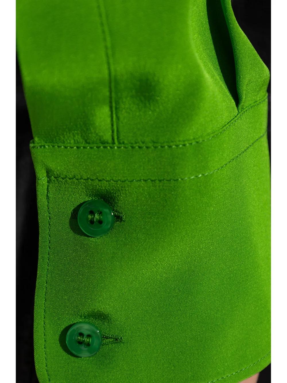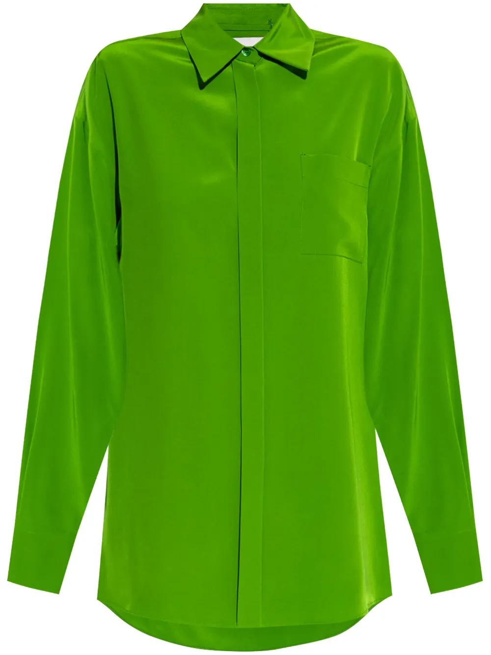 apple green silk concealed front button fastening spread collar long sleeves buttoned-cuff sleeves curved hem
