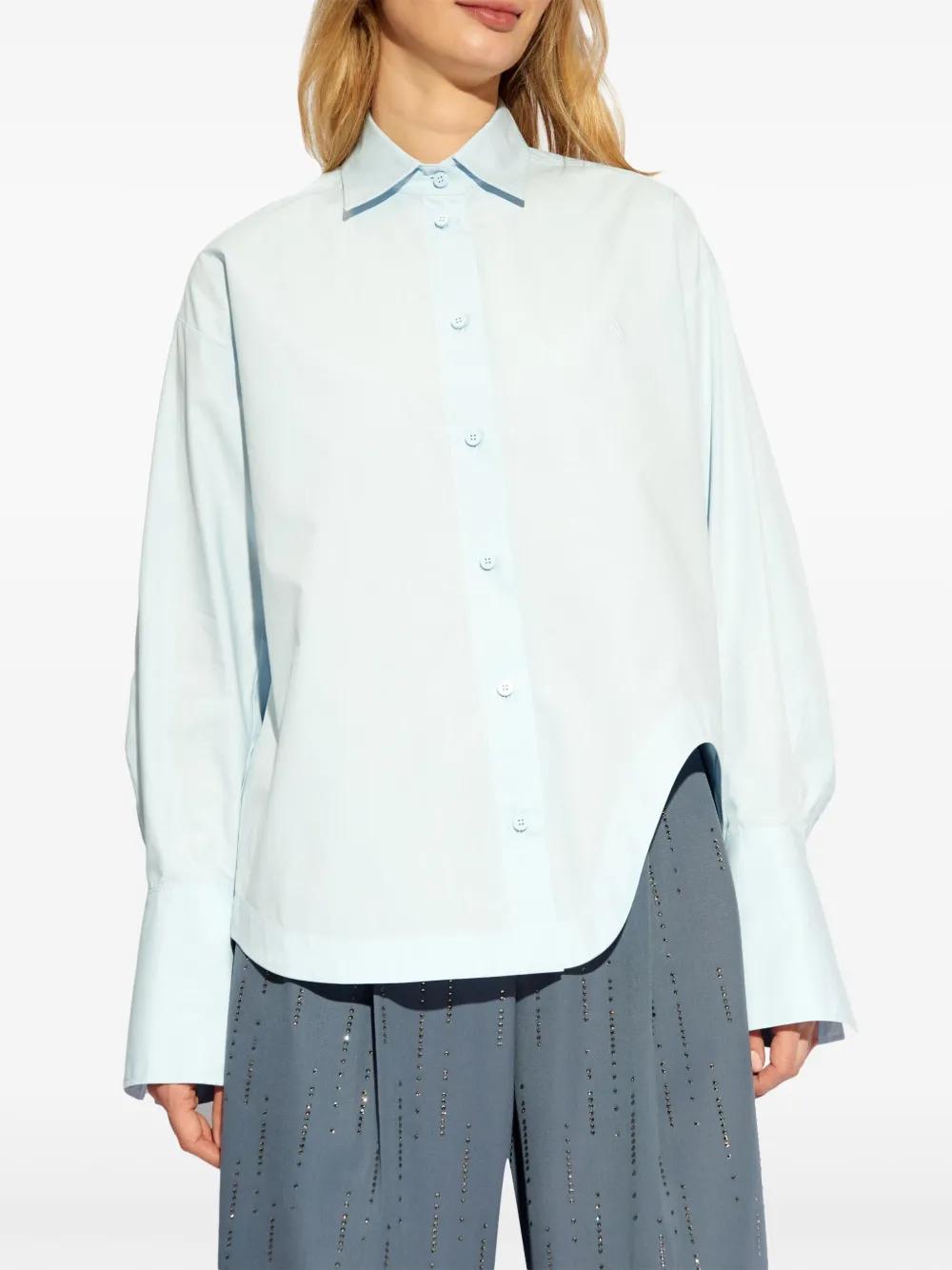 light blue cotton straight-point collar front button fastening drop shoulder long sleeves buttoned cuffs asymmetric hem