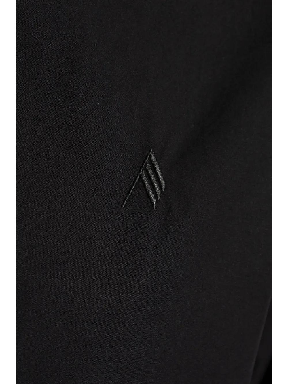 black front button fastening classic collar buttoned-cuff sleeves side slit