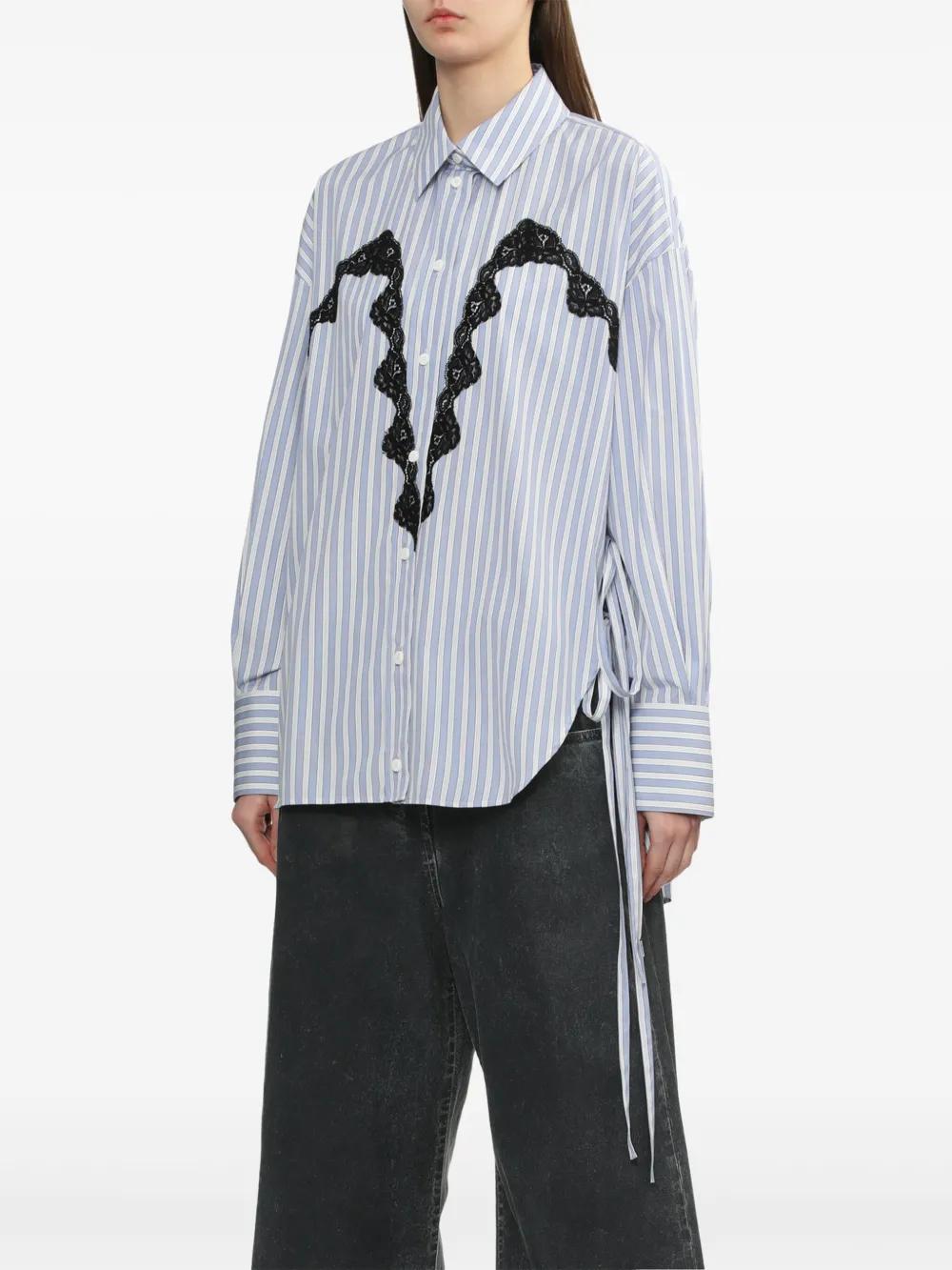 white front button fastening side tie fastening multi-way stripe pattern straight-point collar