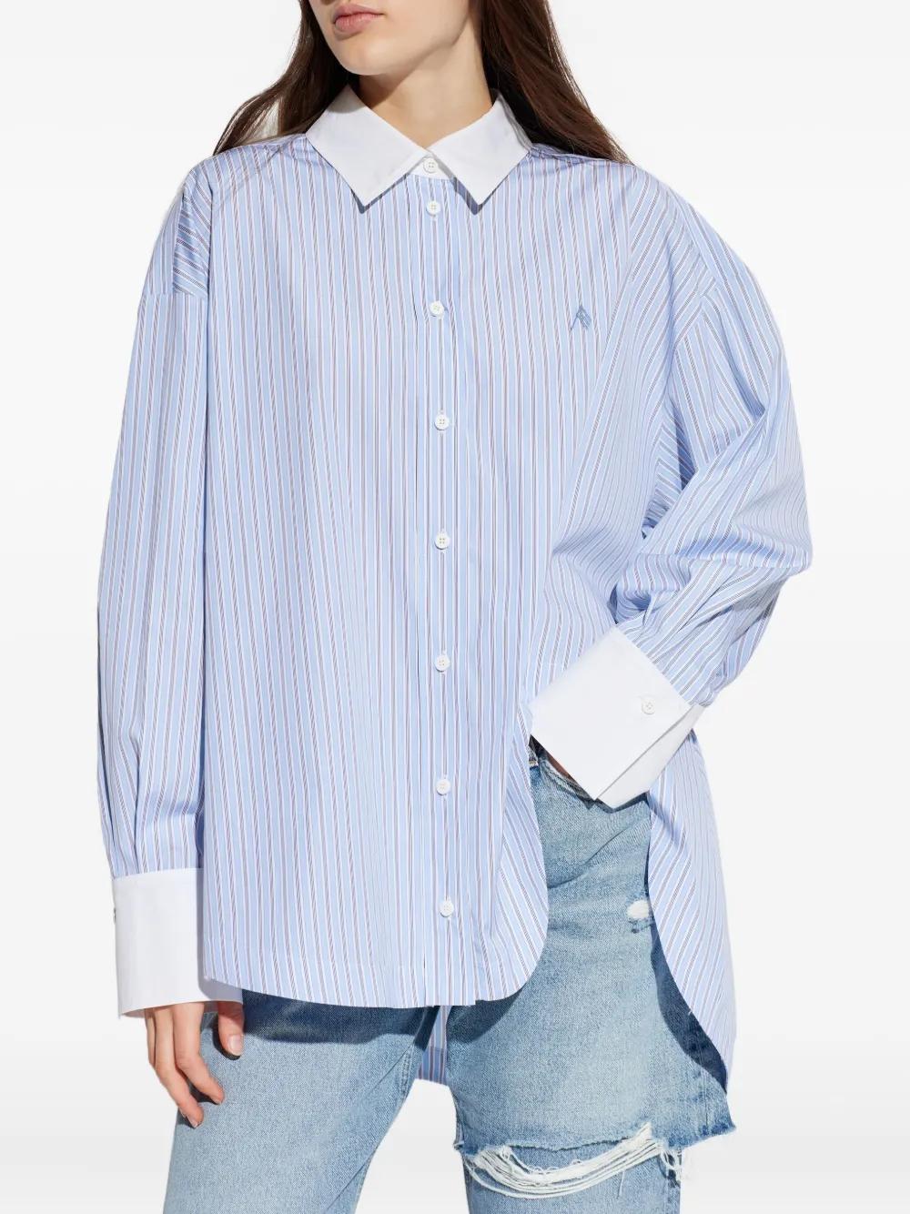 light blue striped embroidered detail button fastening classic collar long sleeves