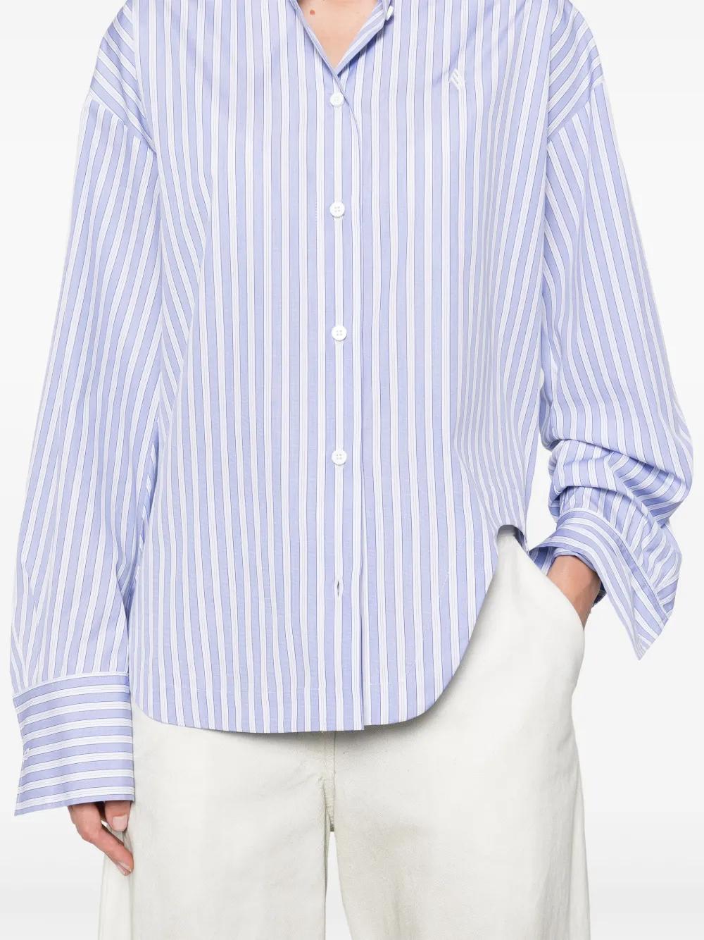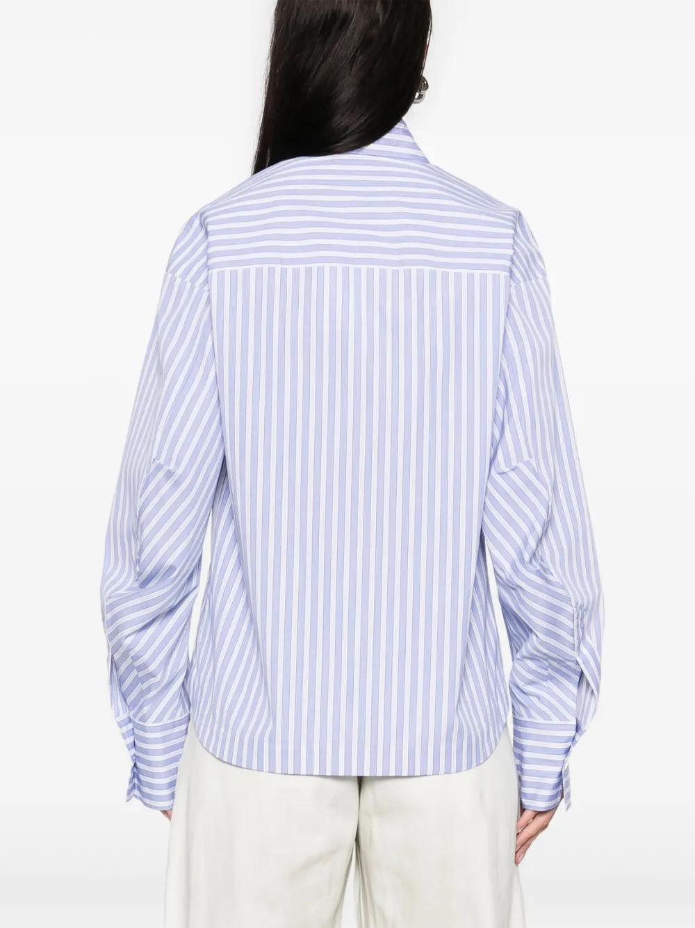 white front button fastening embroidered logo at the chest classic collar long sleeves