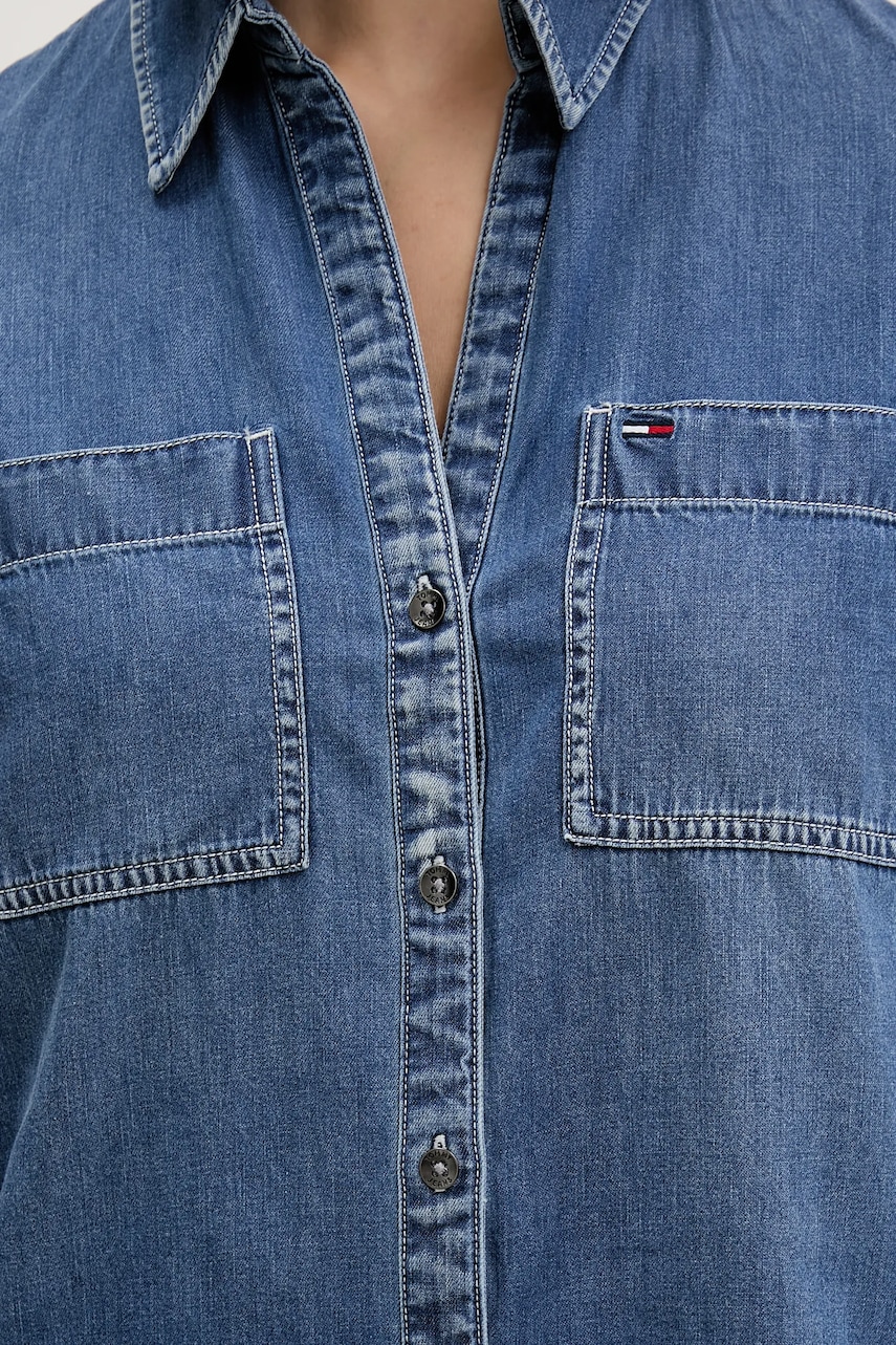 Tommy Jeans koszula damska kolor niebieski regular z kołnierzykiem klasycznym DW0DW22007