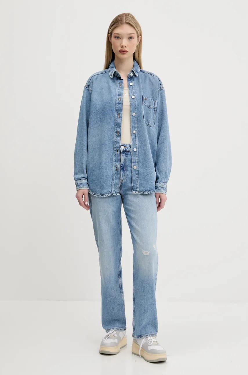 Tommy Jeans koszula jeansowa damska kolor niebieski relaxed z kołnierzykiem klasycznym DW0DW20365