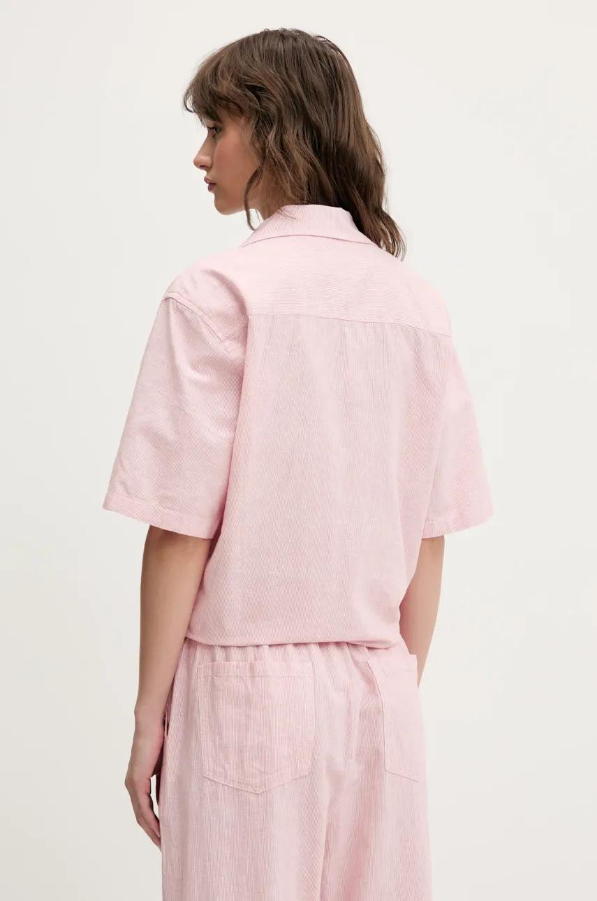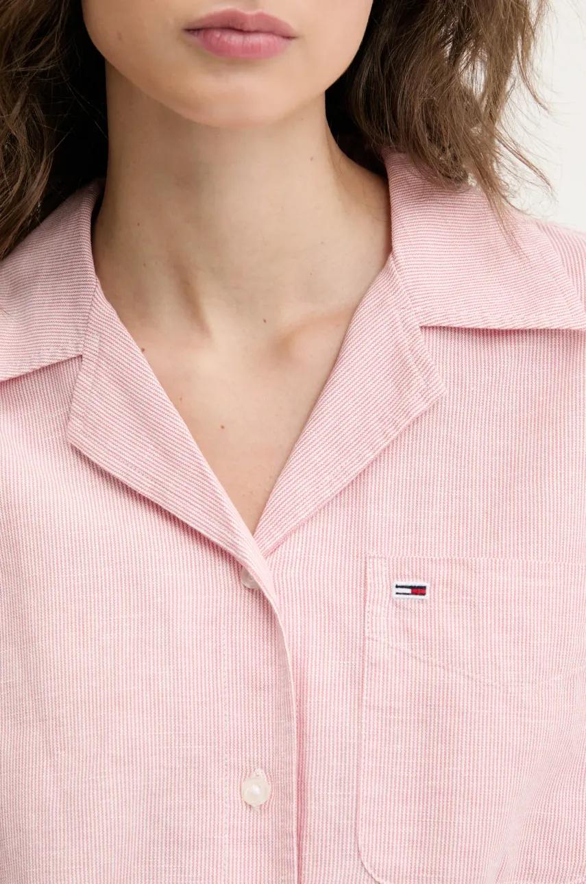 Tommy Jeans koszula z domieszką lnu damska kolor różowy relaxed z kołnierzykiem klasycznym DW0DW20286
