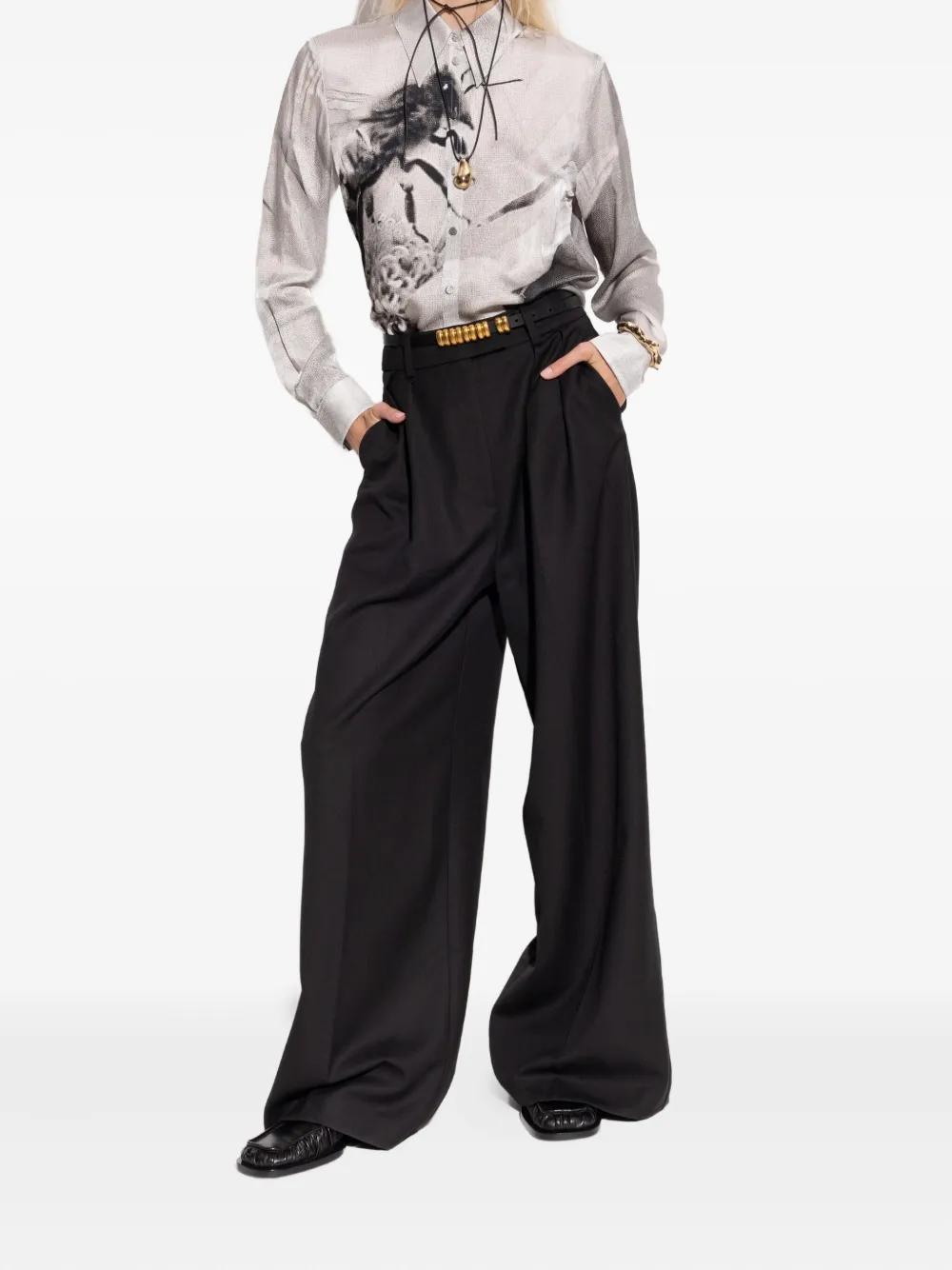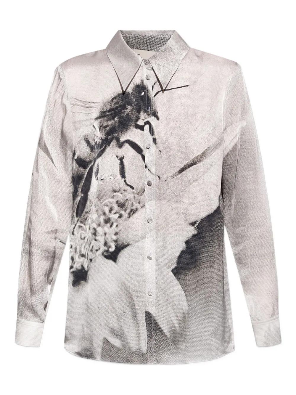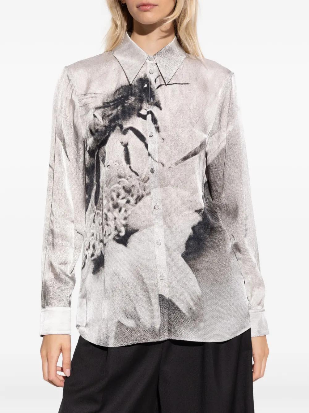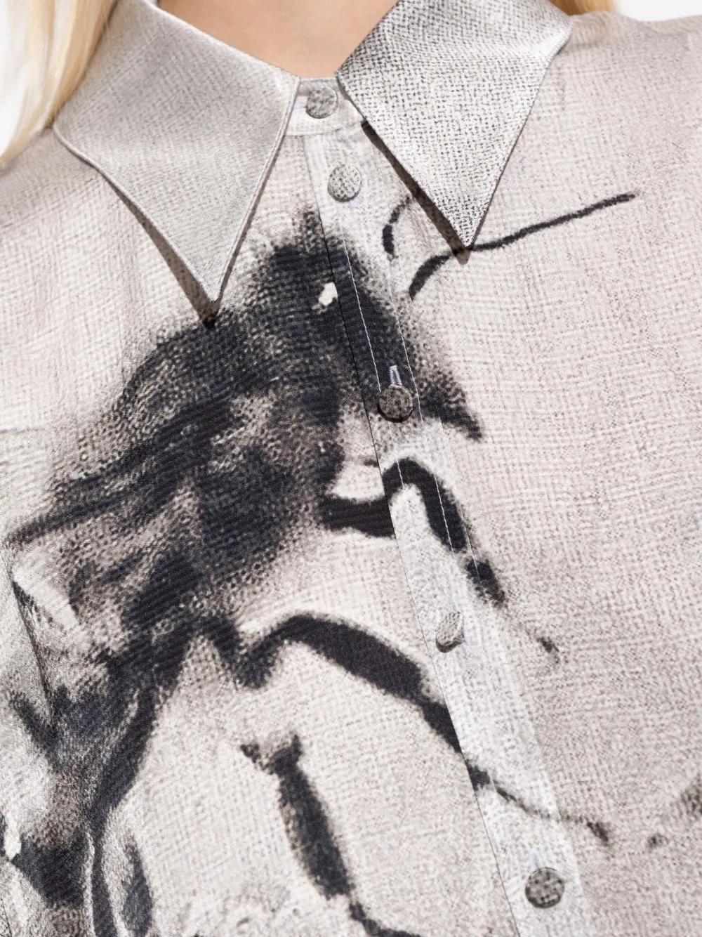 grey button front fastening long sleeves all-over graphic-print buttoned cuffs
