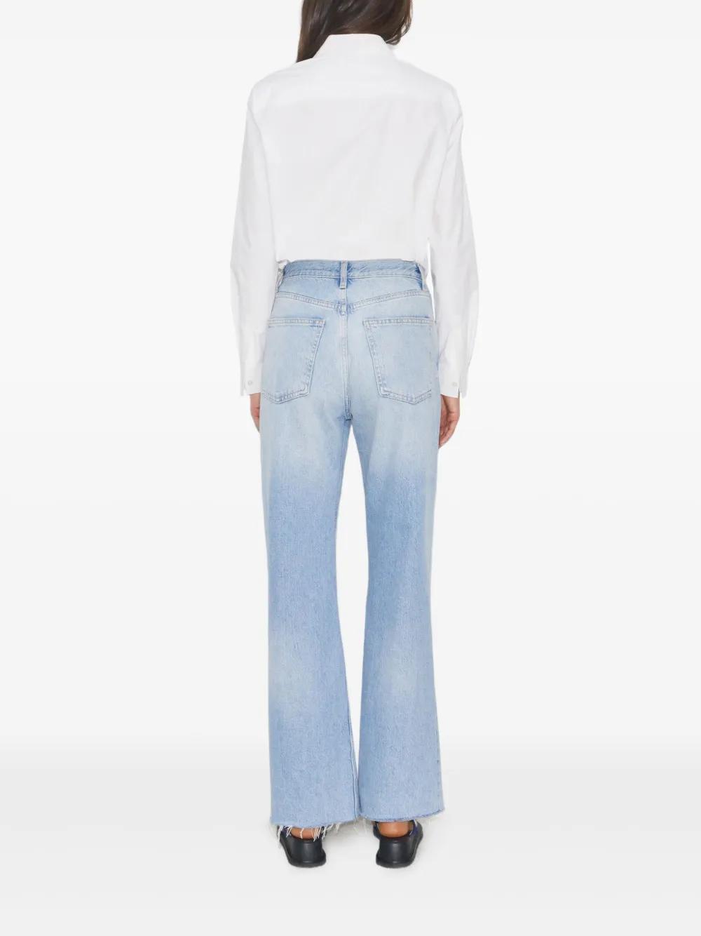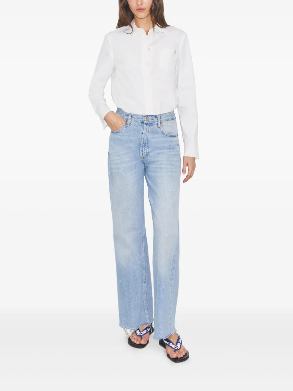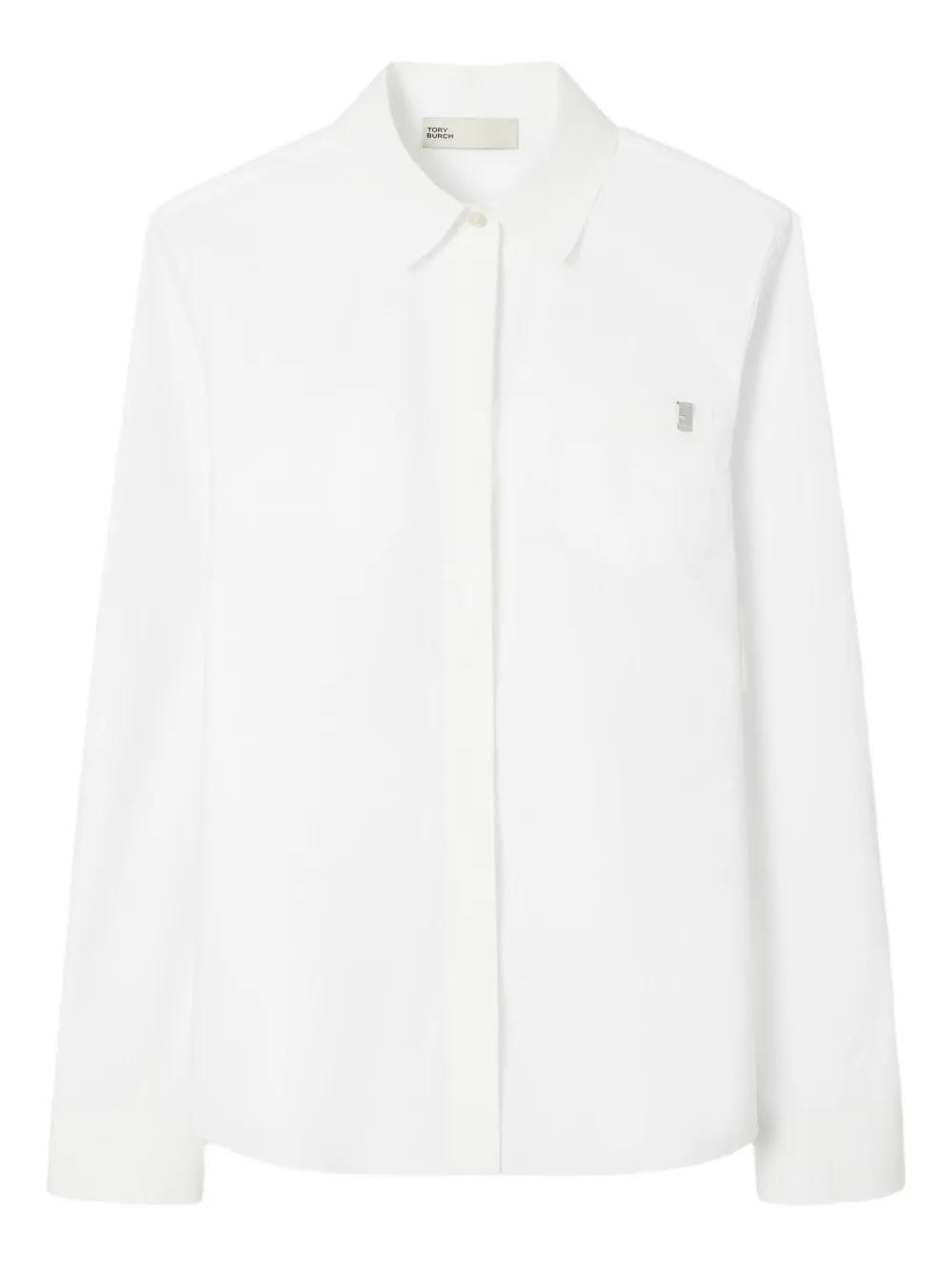 white classic collar chest pocket rounded hem buttoned cuff logo detail