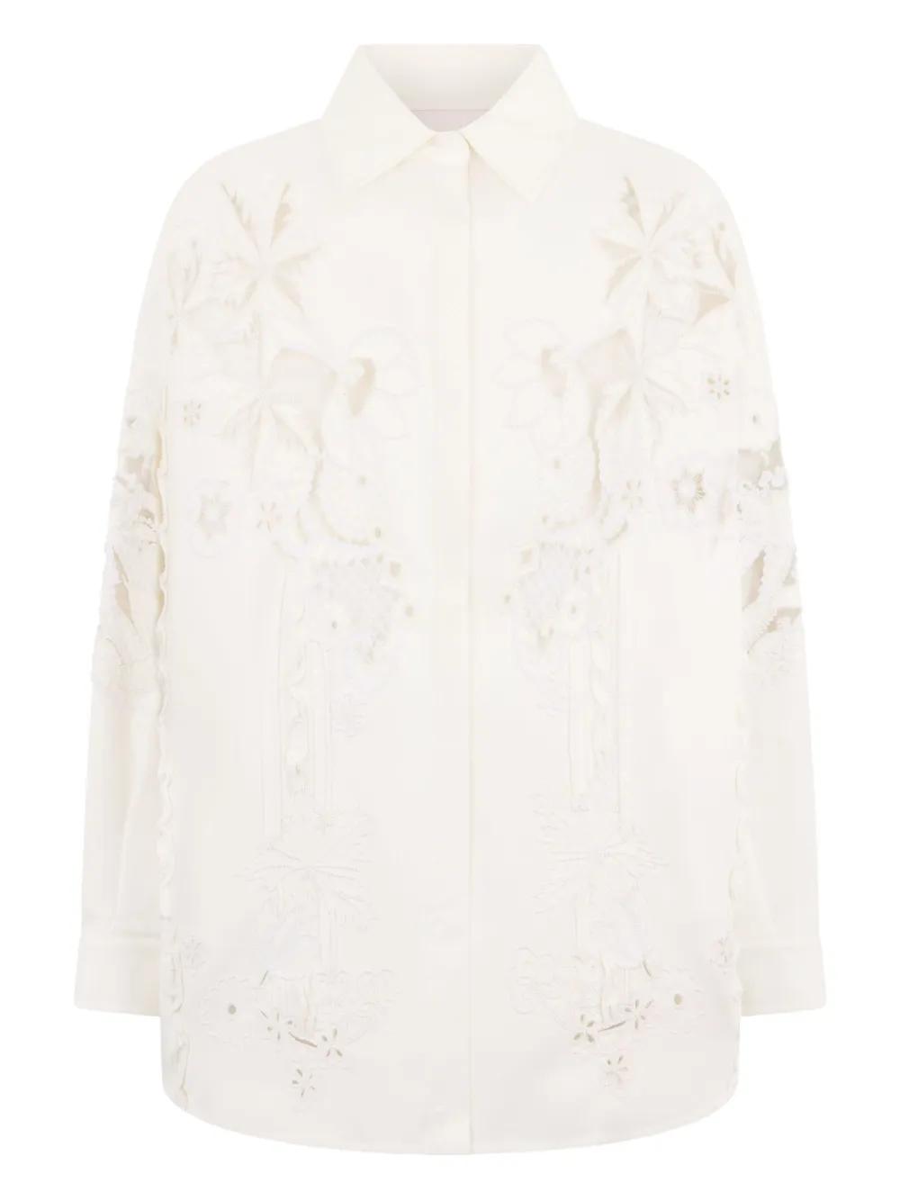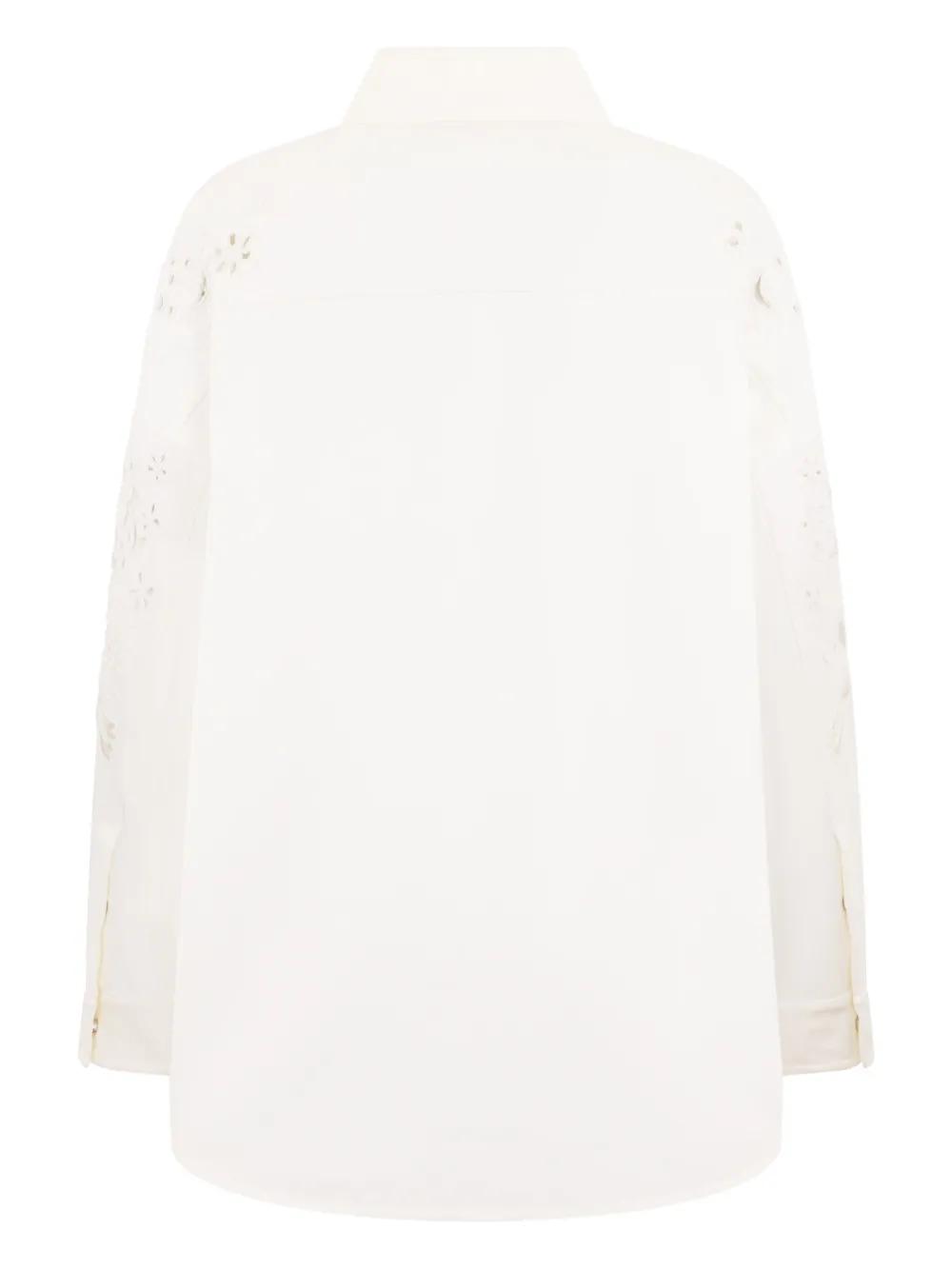 white floral lace detail button fastening long sleeves classic collar straight hem