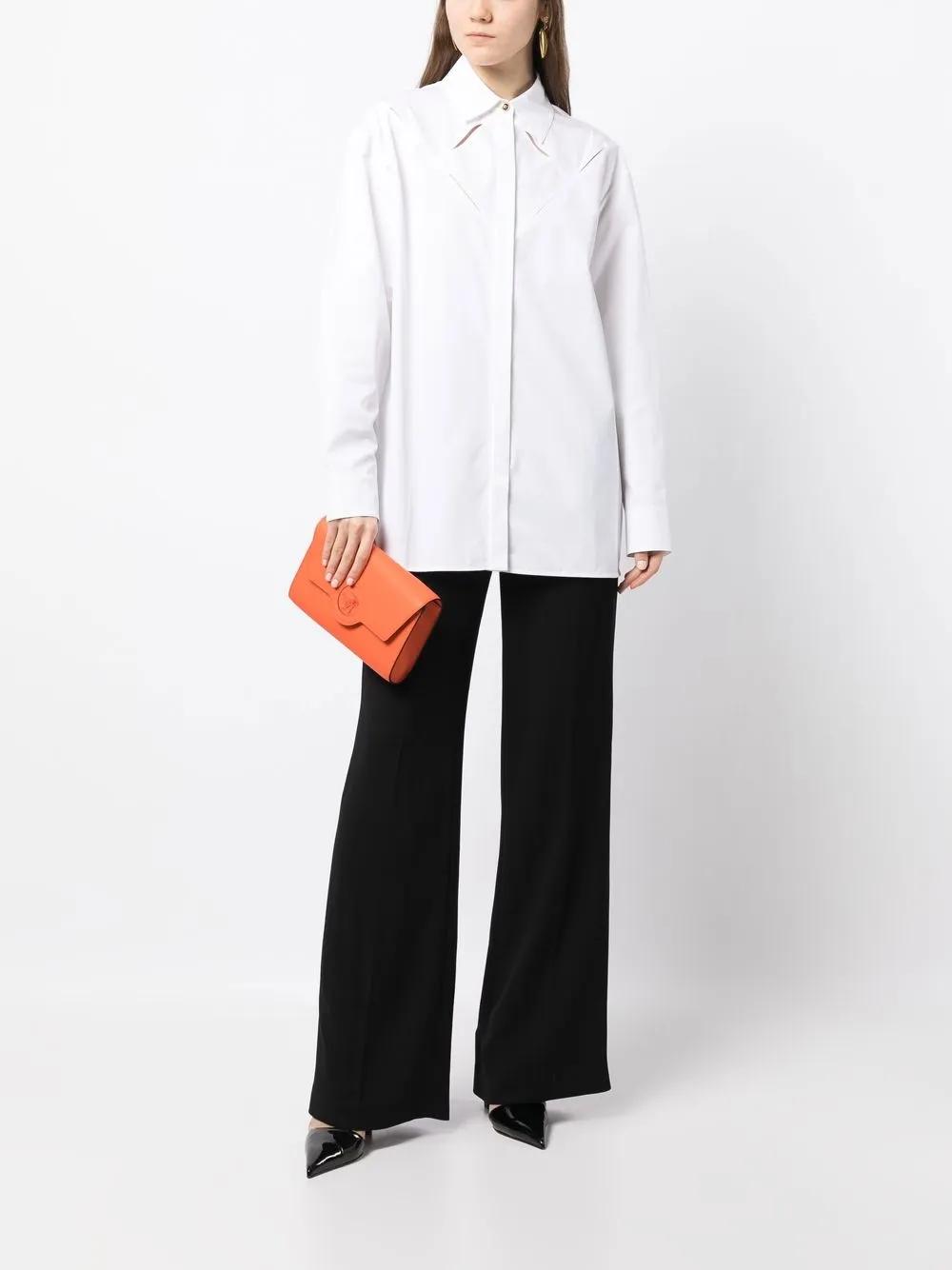 white cotton cut-out detailing classic collar front button fastening long sleeves buttoned cuffs straight hem