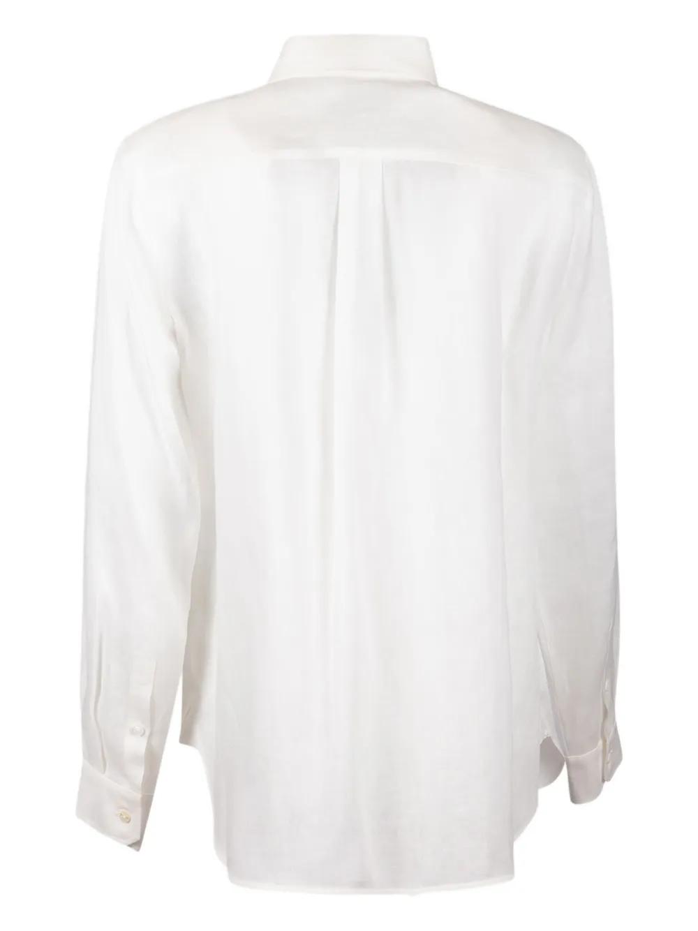 white long sleeves buttoned cuffs pointed collar button front cotton poplin