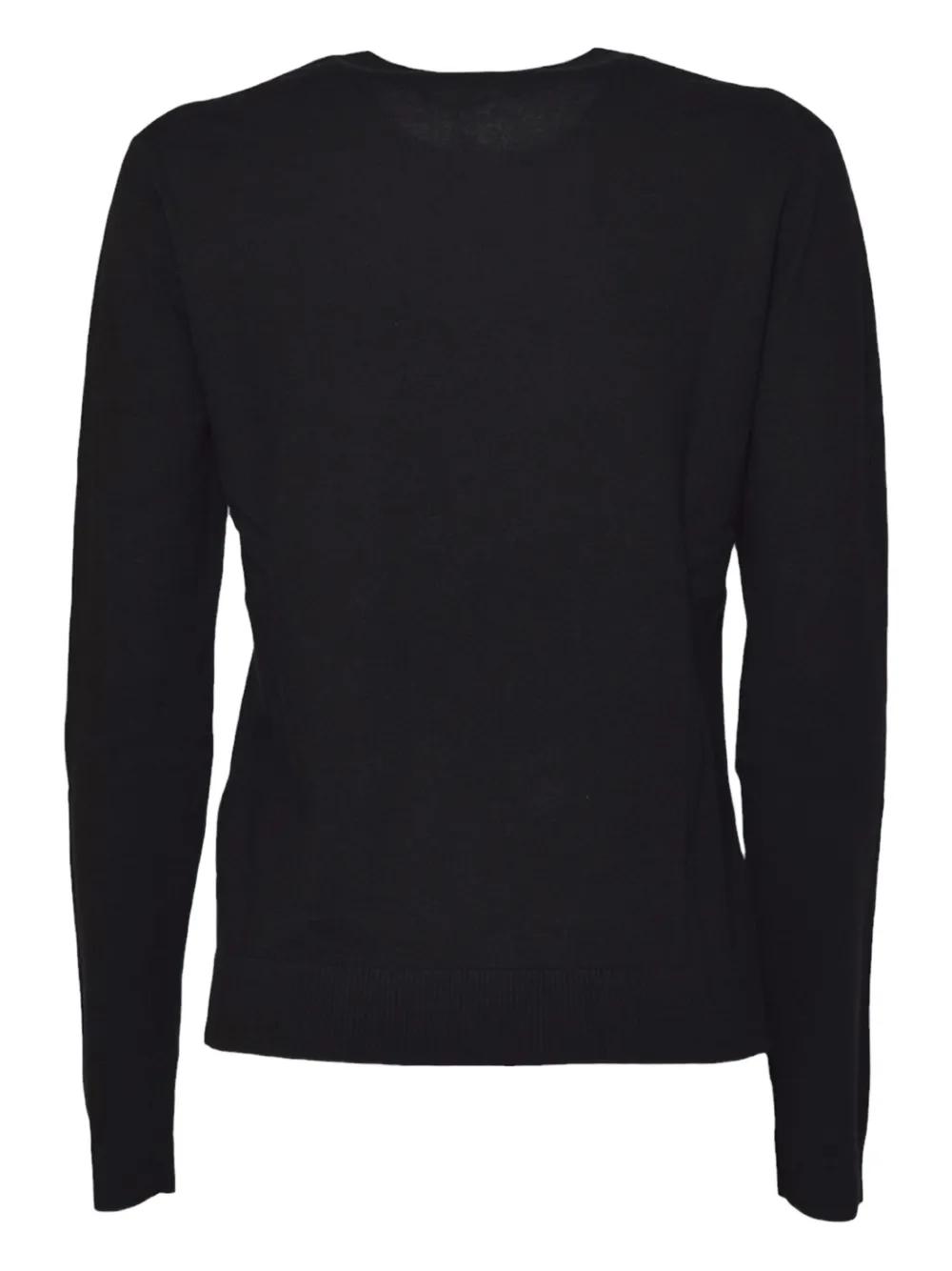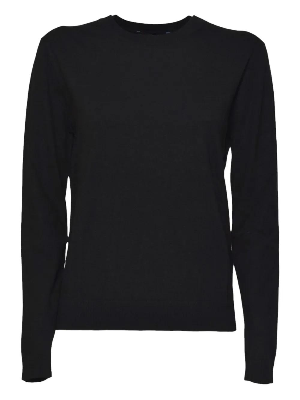 black round neck long sleeves straight hem rib-knit cuffs rib-knit hem