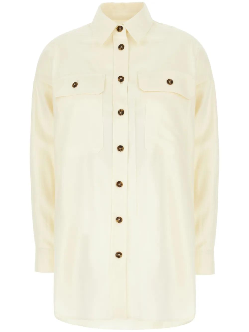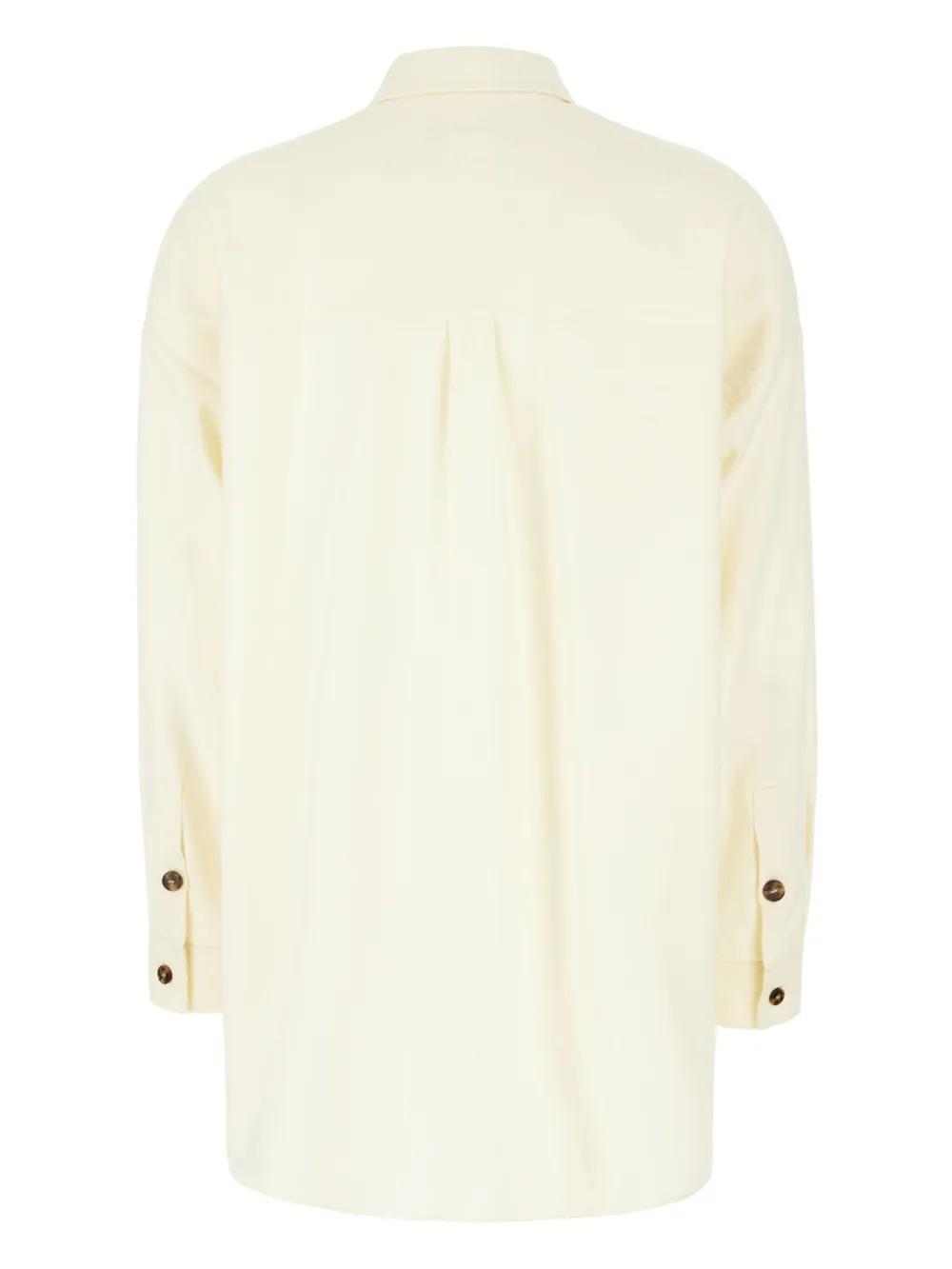 white cotton poplin texture front button fastening two side button-fastening pockets classic collar