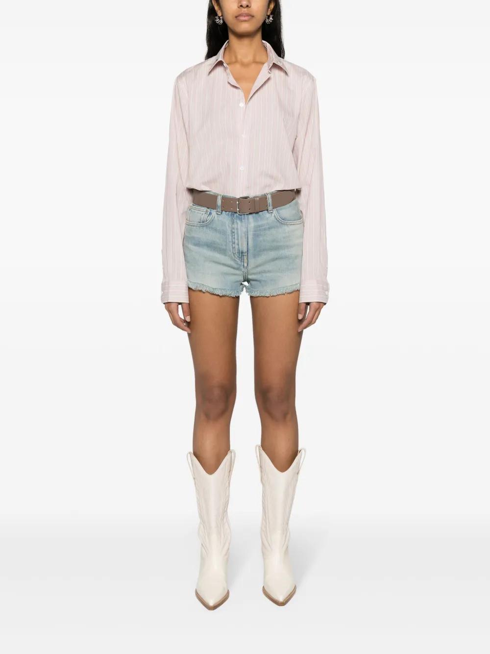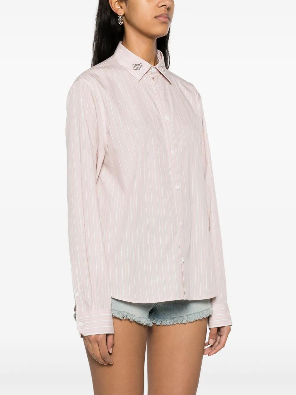 pink/white/grey cotton poplin texture classic collar embroidered motif at the collar front button fastening logo-debossed buttons long sleeves buttoned cuffs rear curved hem