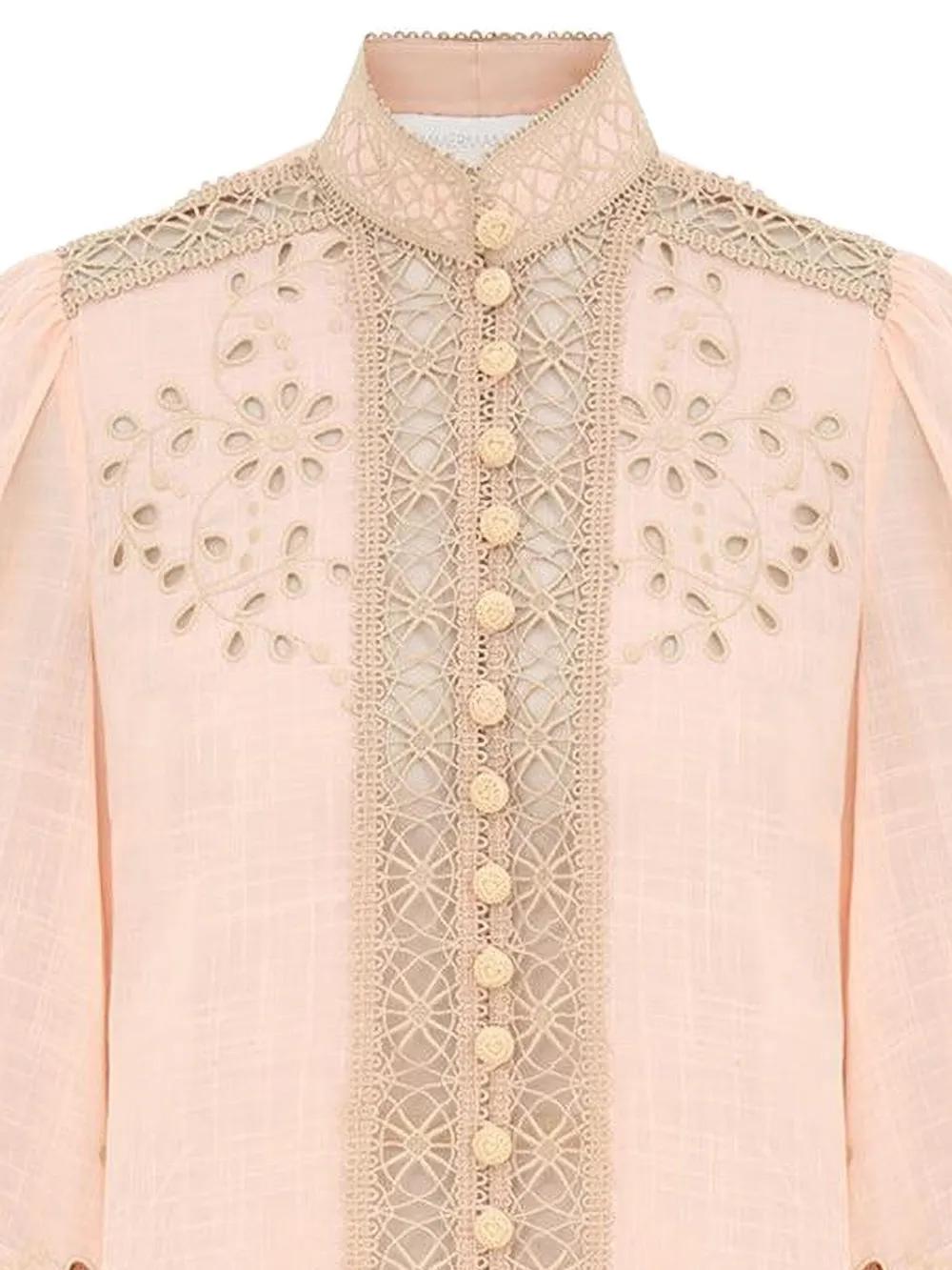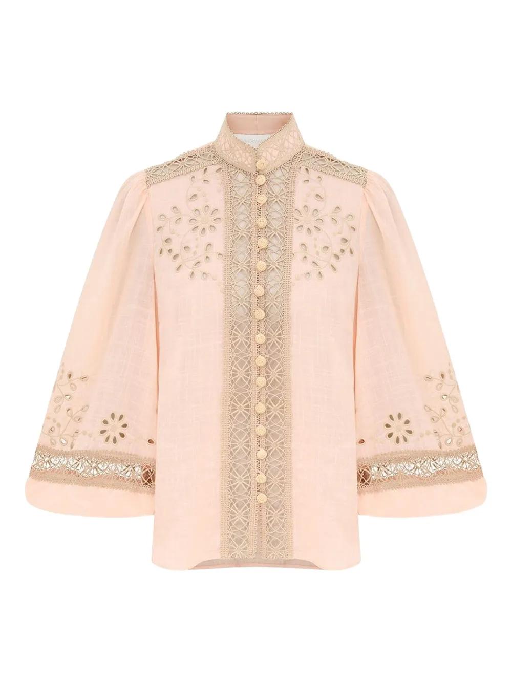ZIMMERMANN floral-embroidered button shirt - Pink