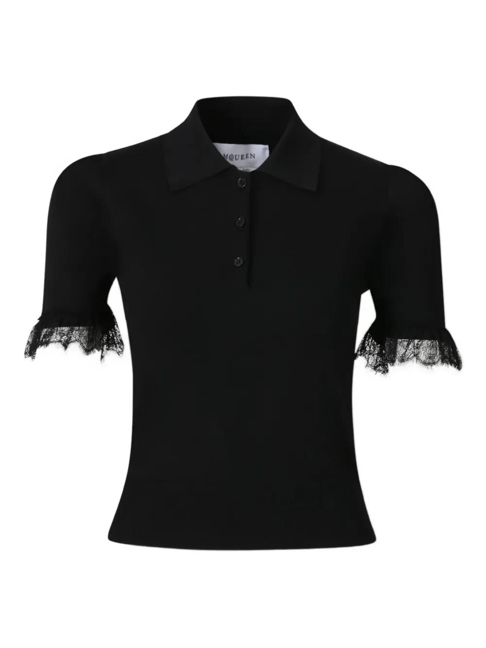Alexander McQueen lace-trim polo top - Black