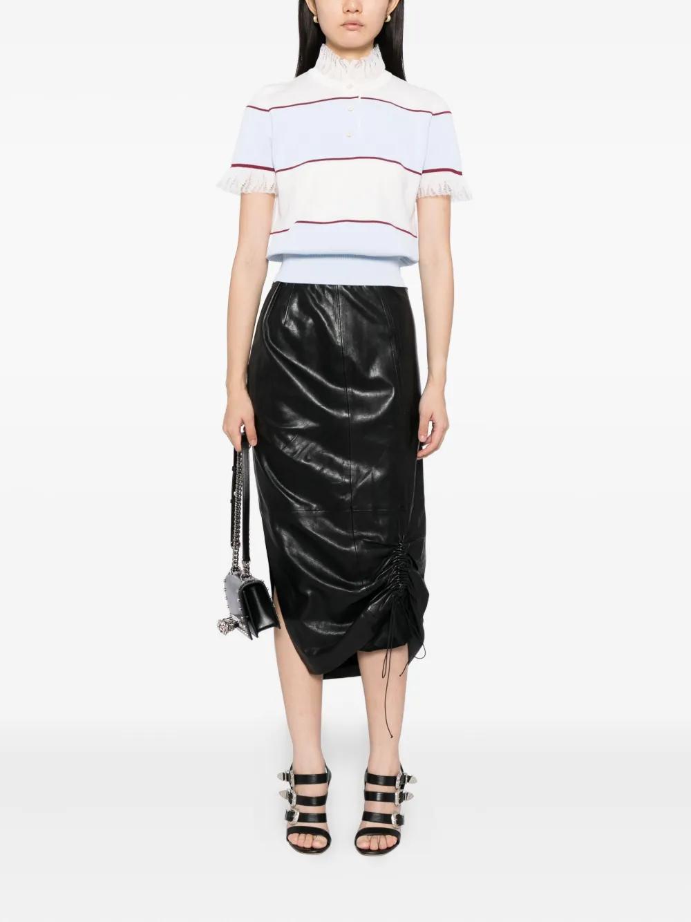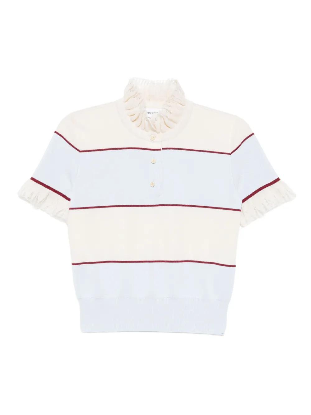 light blue/ivory/burgundy front button fastening lace detailing ribbed hem short sleeves