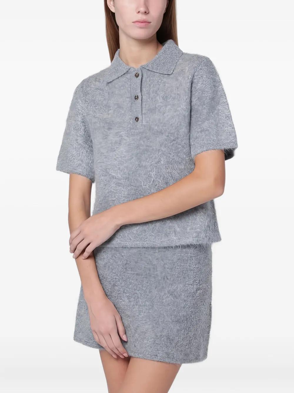 black stretch-design ribbed knit embroidered logo to the side tonal design polo collar short sleeves straight hem ribbed trim