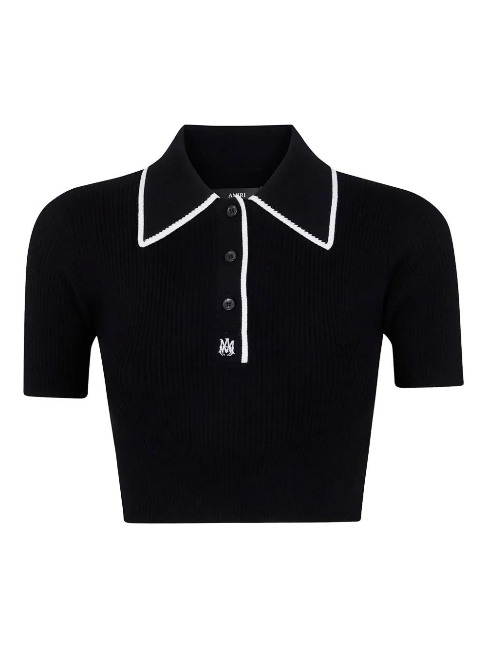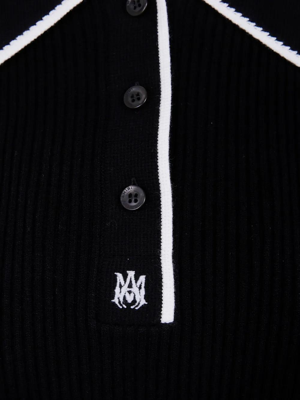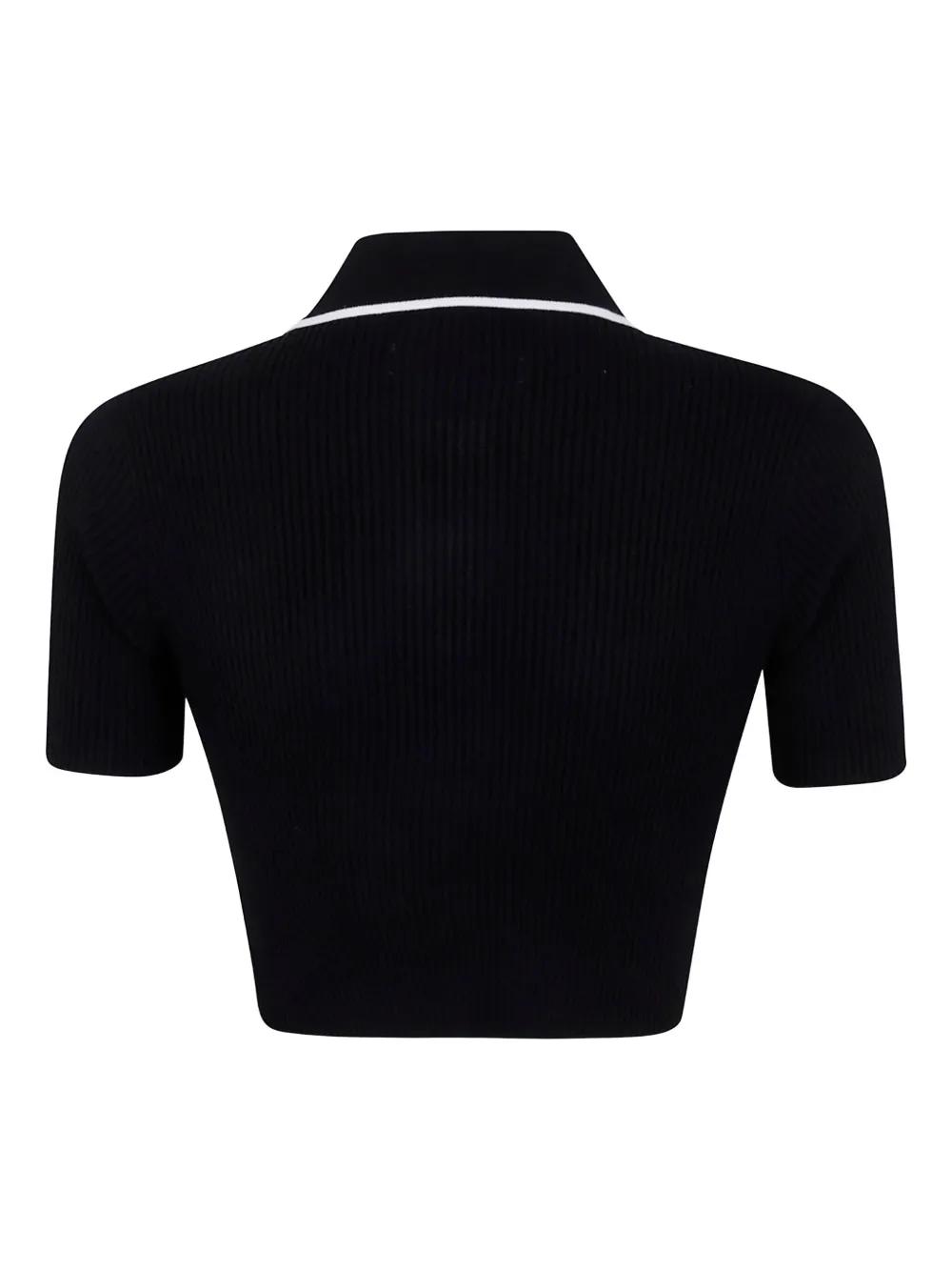 black ribbed knit short sleeves polo collar white detail embroidered logo