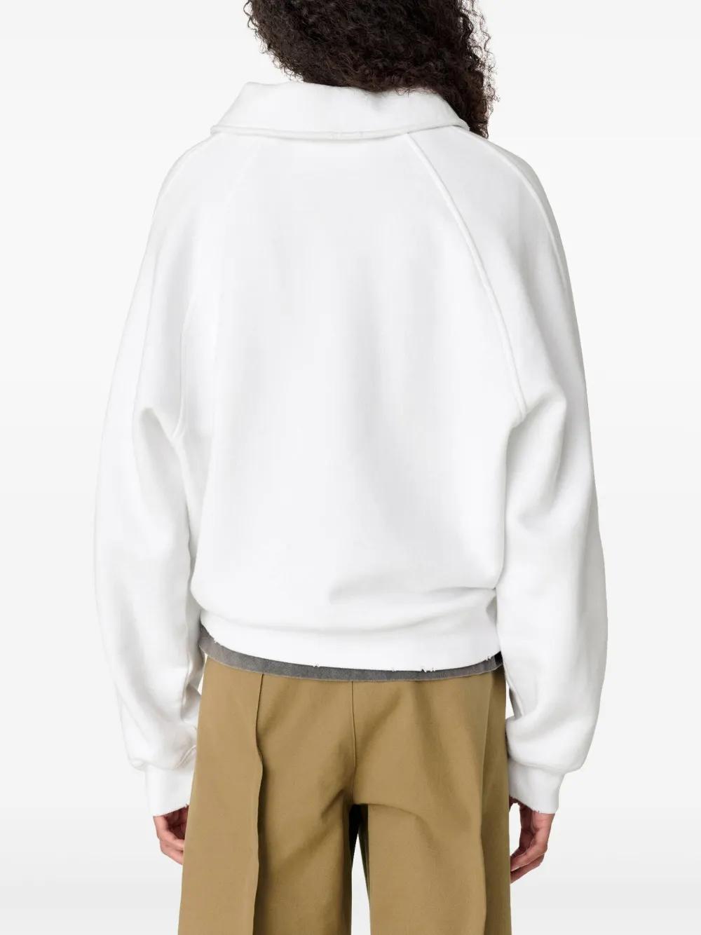 white front button placket embroidered logo at the chest polo collar long sleeves