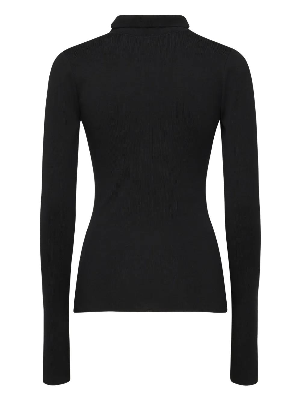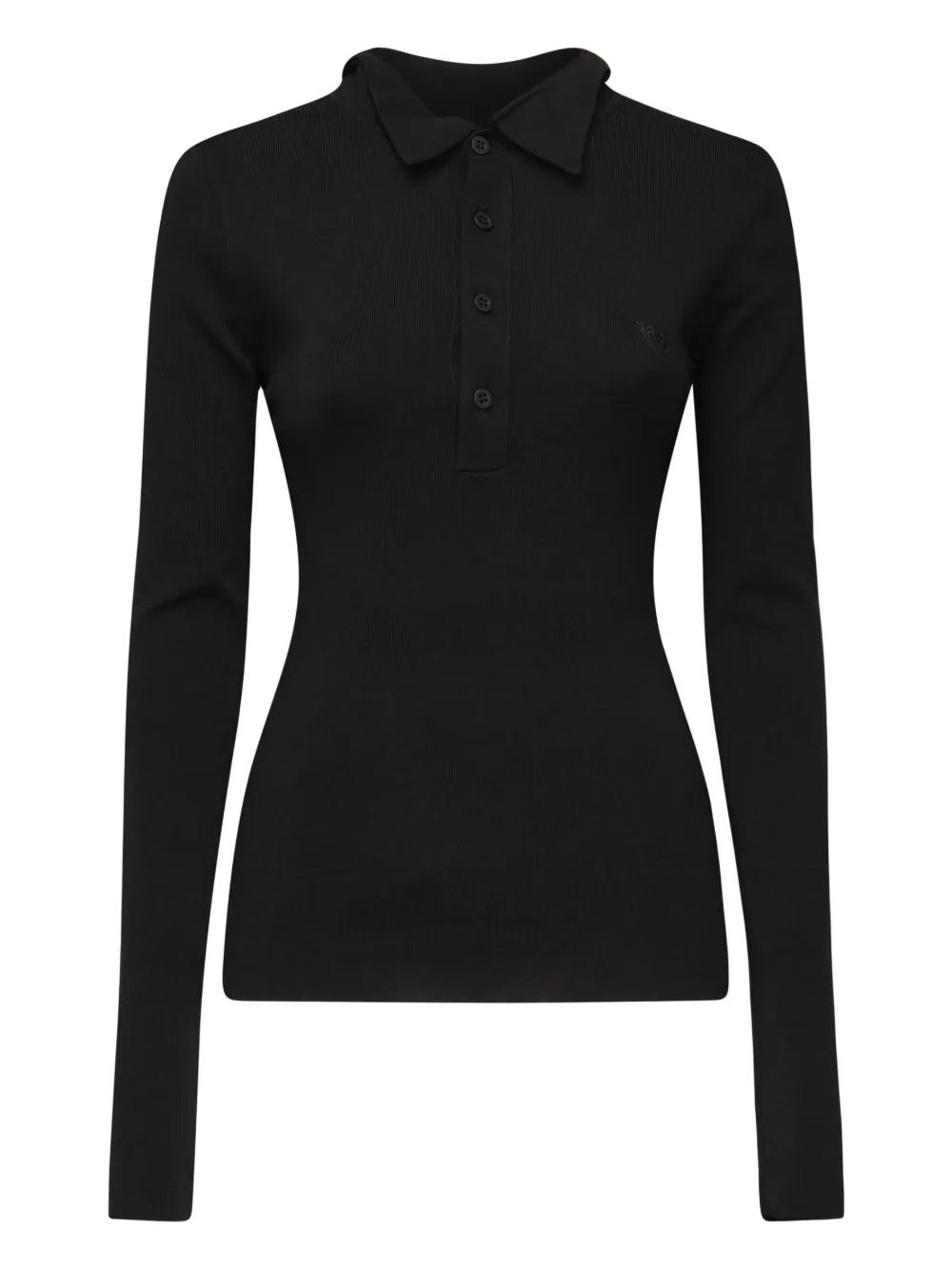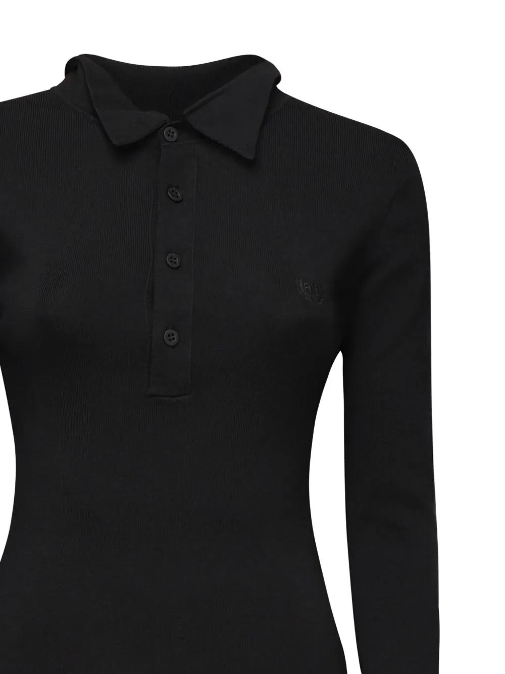 black ribbed texture long sleeves polo collar button fastening embroidered logo