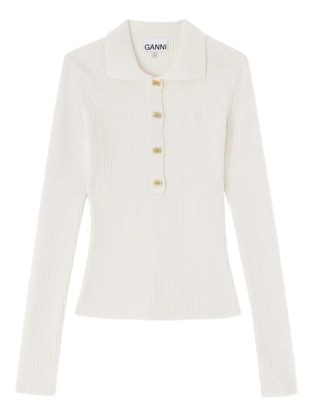 GANNI button ribbed polo shirts - Neutrals