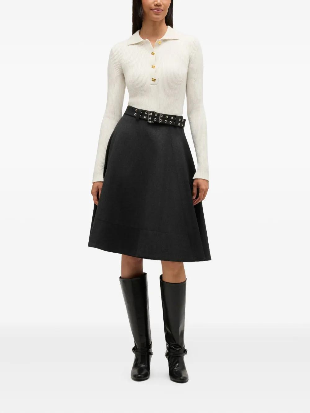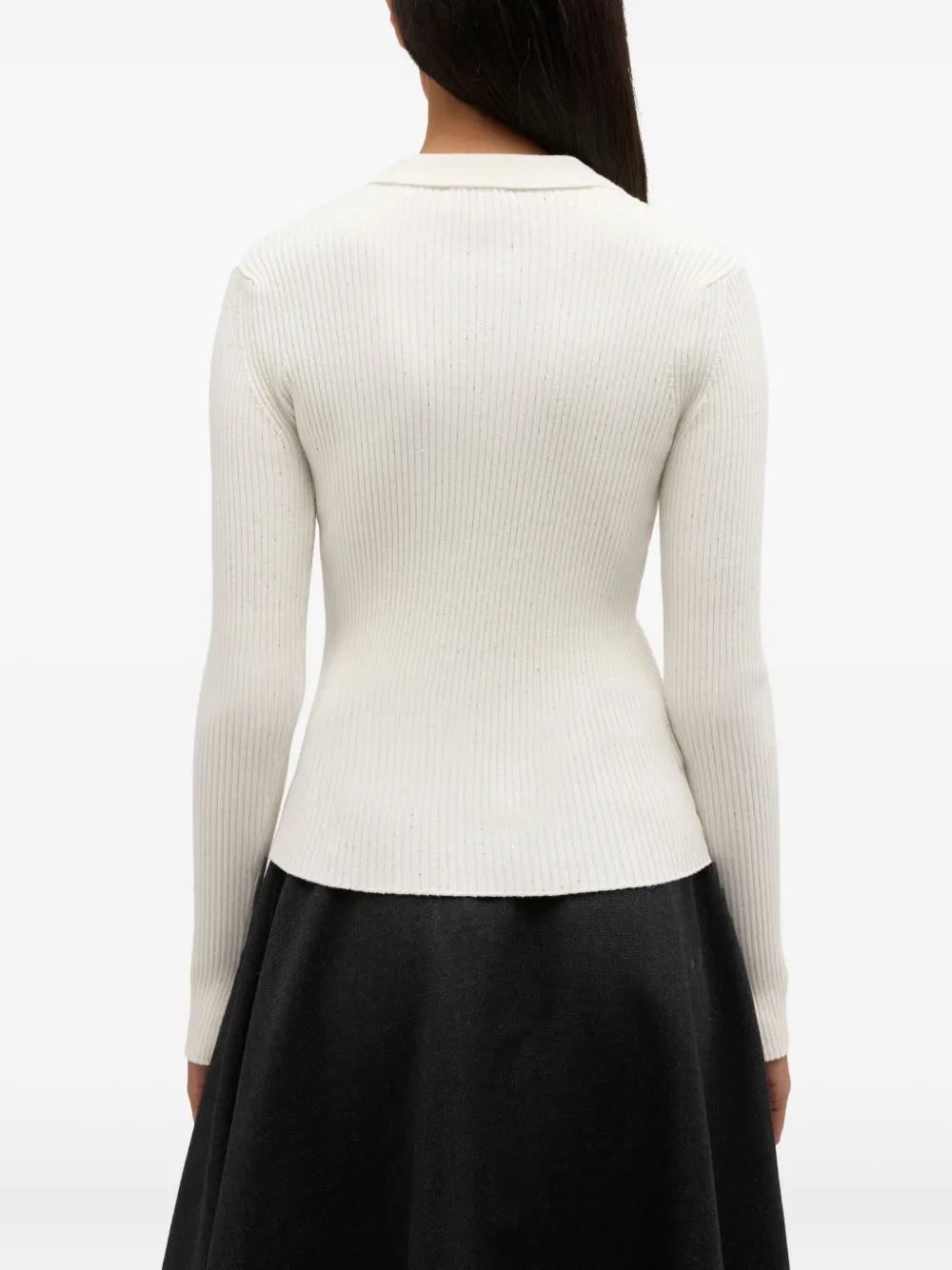 off-white ribbed knit point collar front button fastening long sleeves
