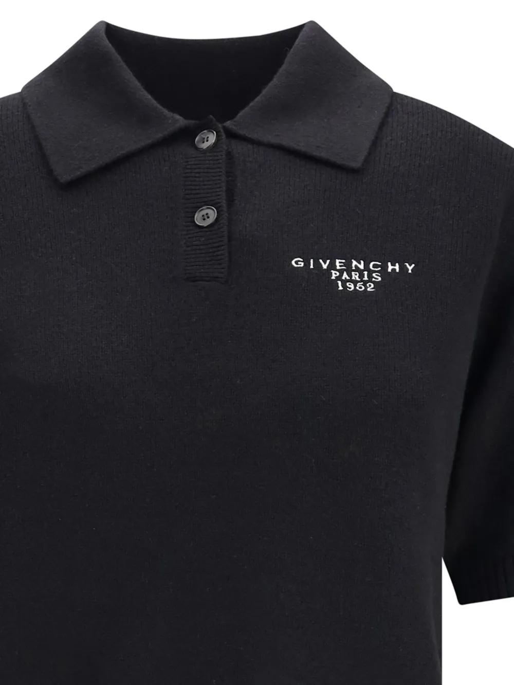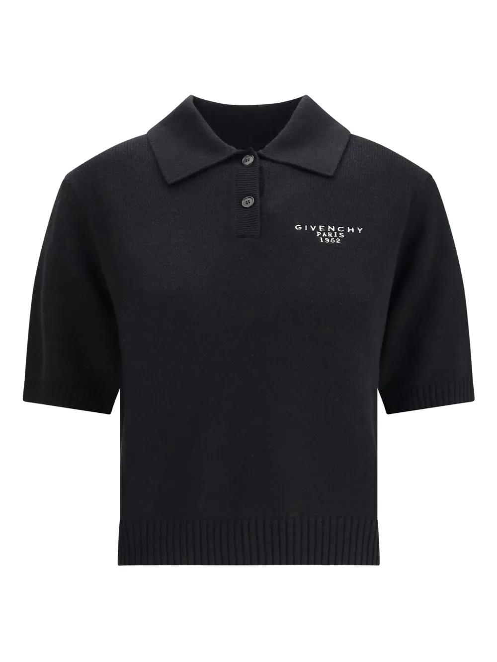 black short sleeves polo collar short button fastening wool-cashmere blend logo embroidery