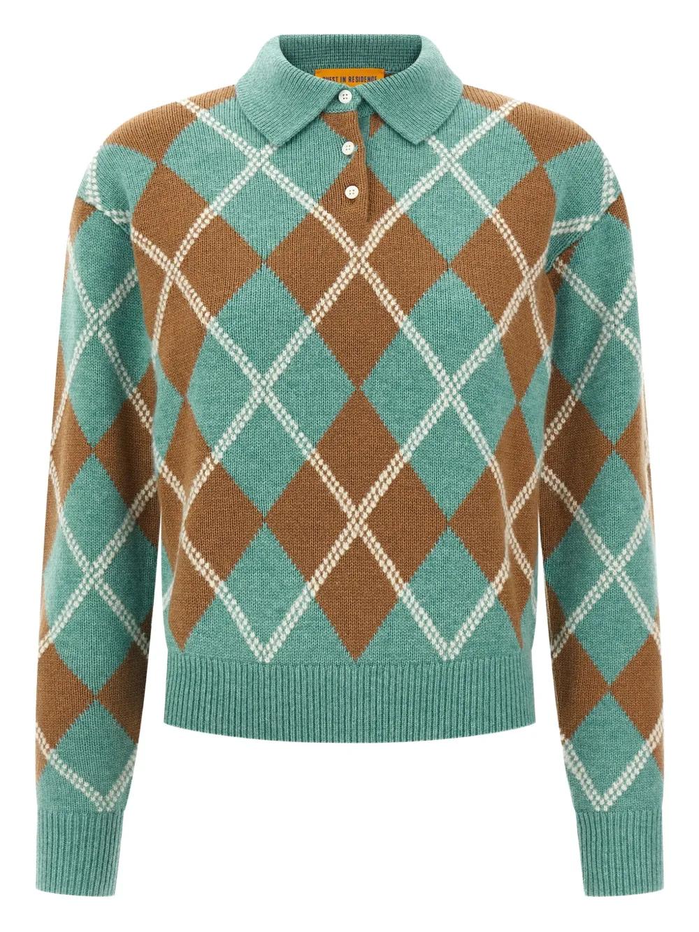 Guest In Residence argyle-pattern wool-cashmere polo shirt - Blue