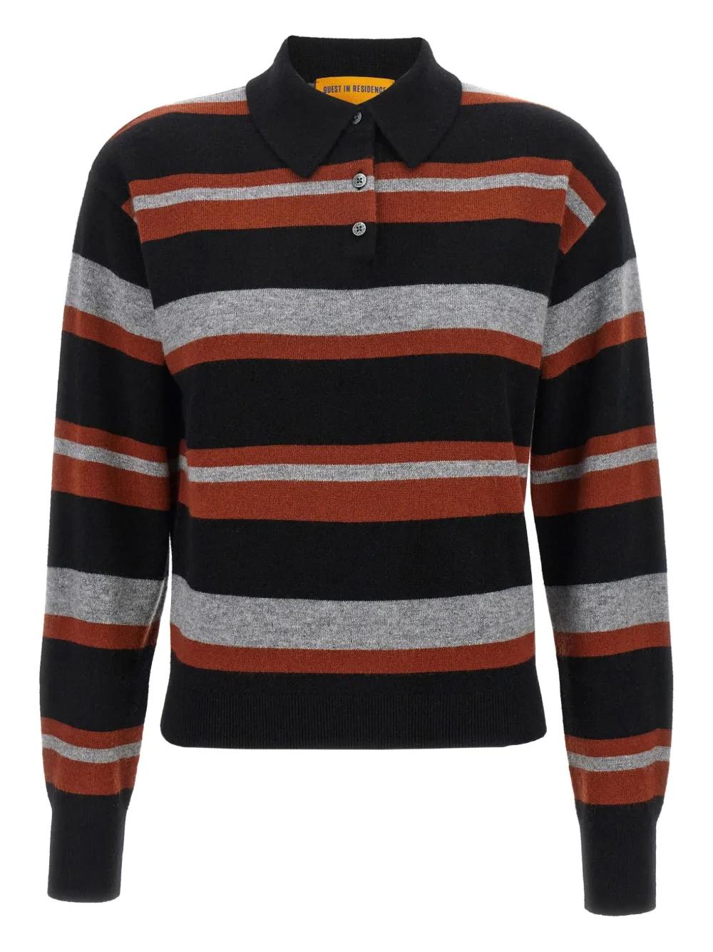 red horizontal stripe pattern long sleeves short front button fastening ribbed cuffs