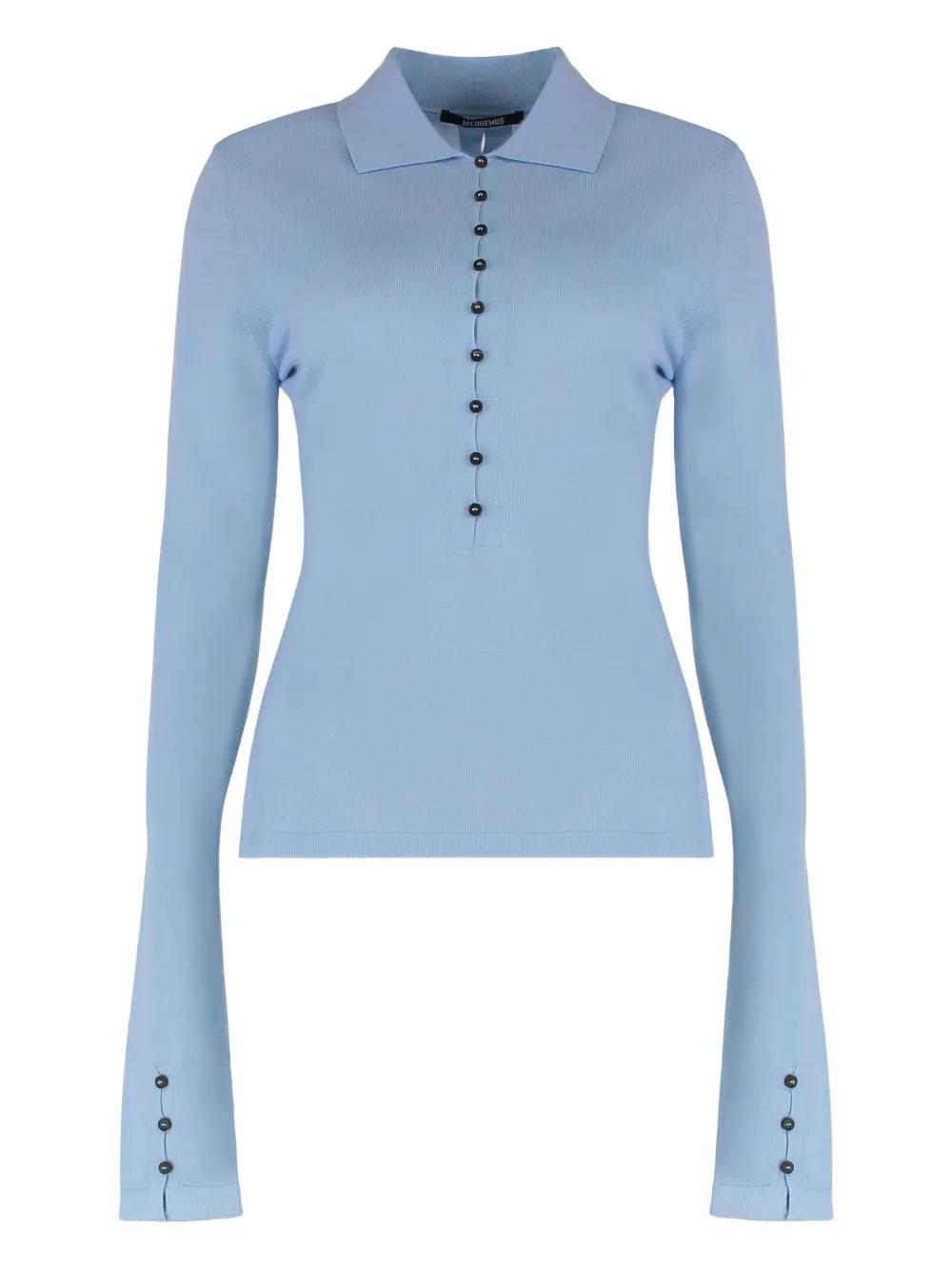 light blue button fastening long sleeves polo collar buttoned cuffs
