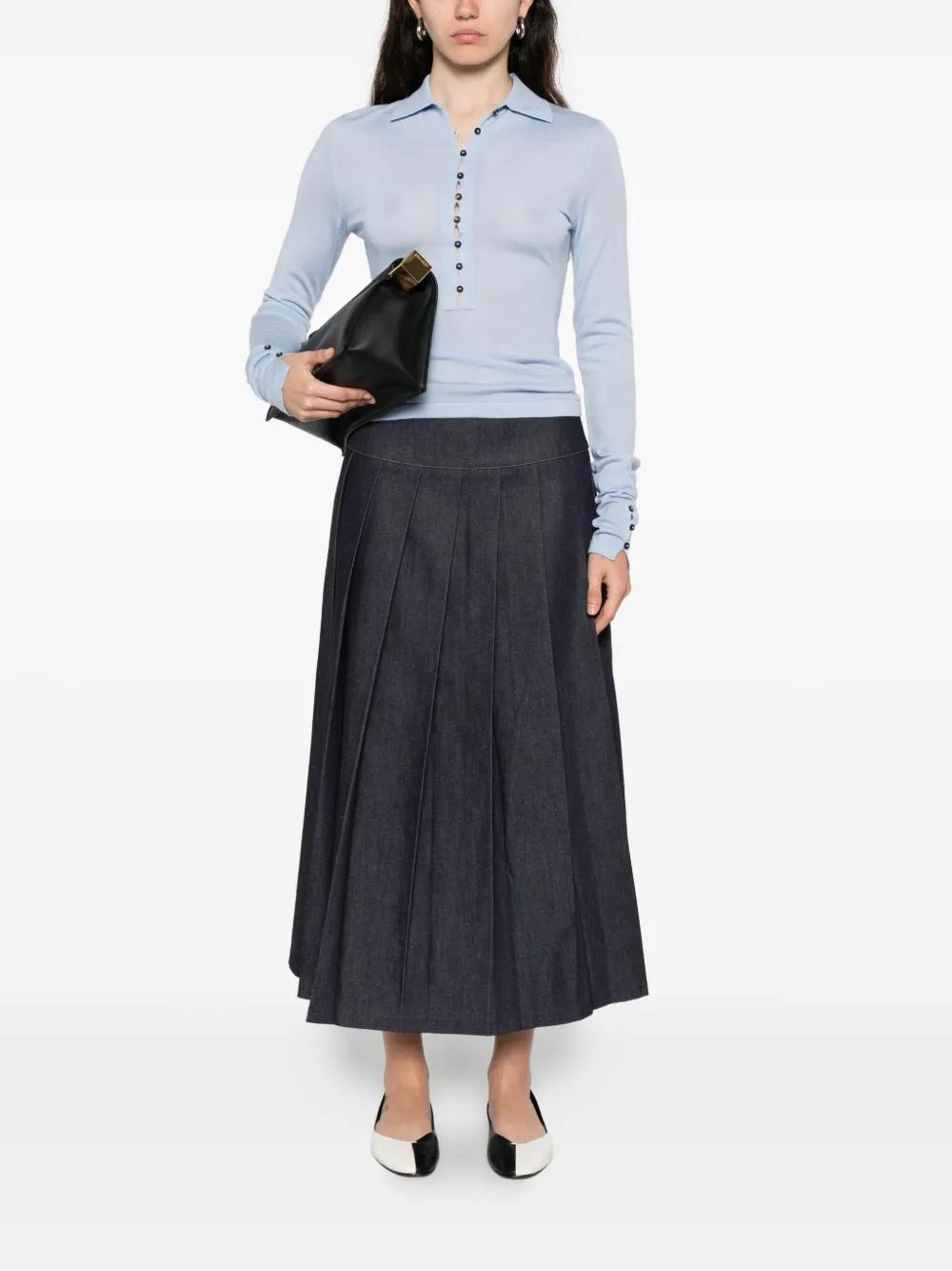 light blue button fastening polo collar long sleeves buttoned cuffs embroidered detail