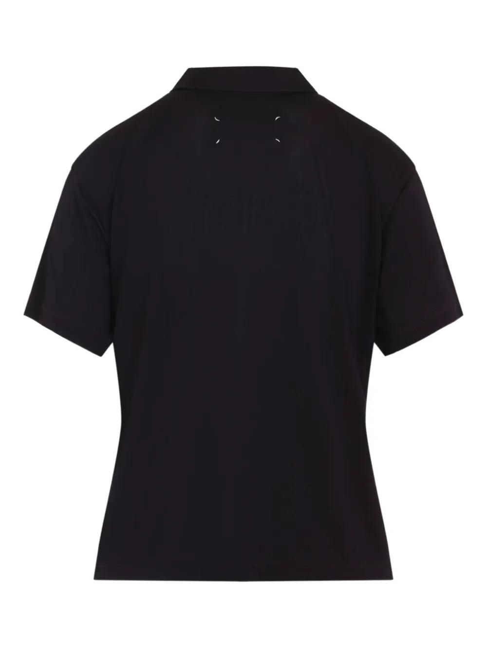 amaranth short sleeves button fastening pointed collar straight hem rear signature four stitches