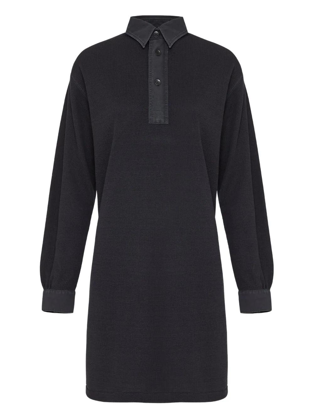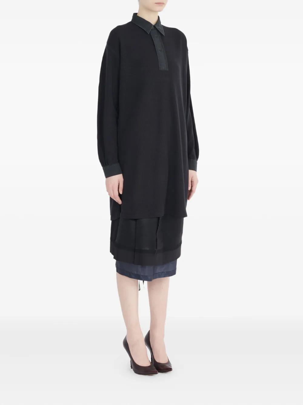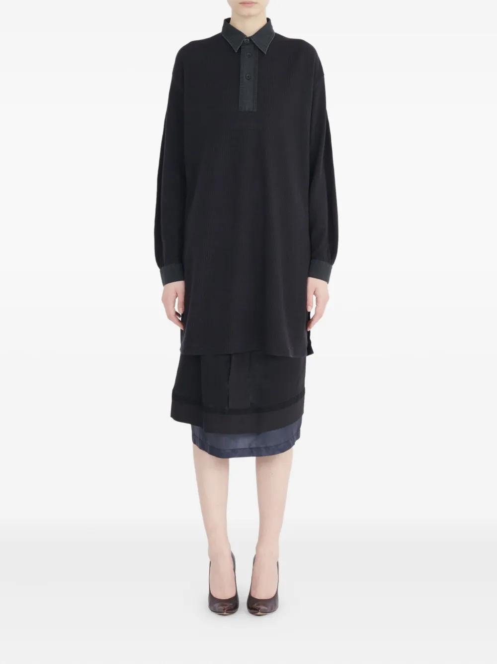midnight blue front button placket long sleeves buttoned cuffs straight hem