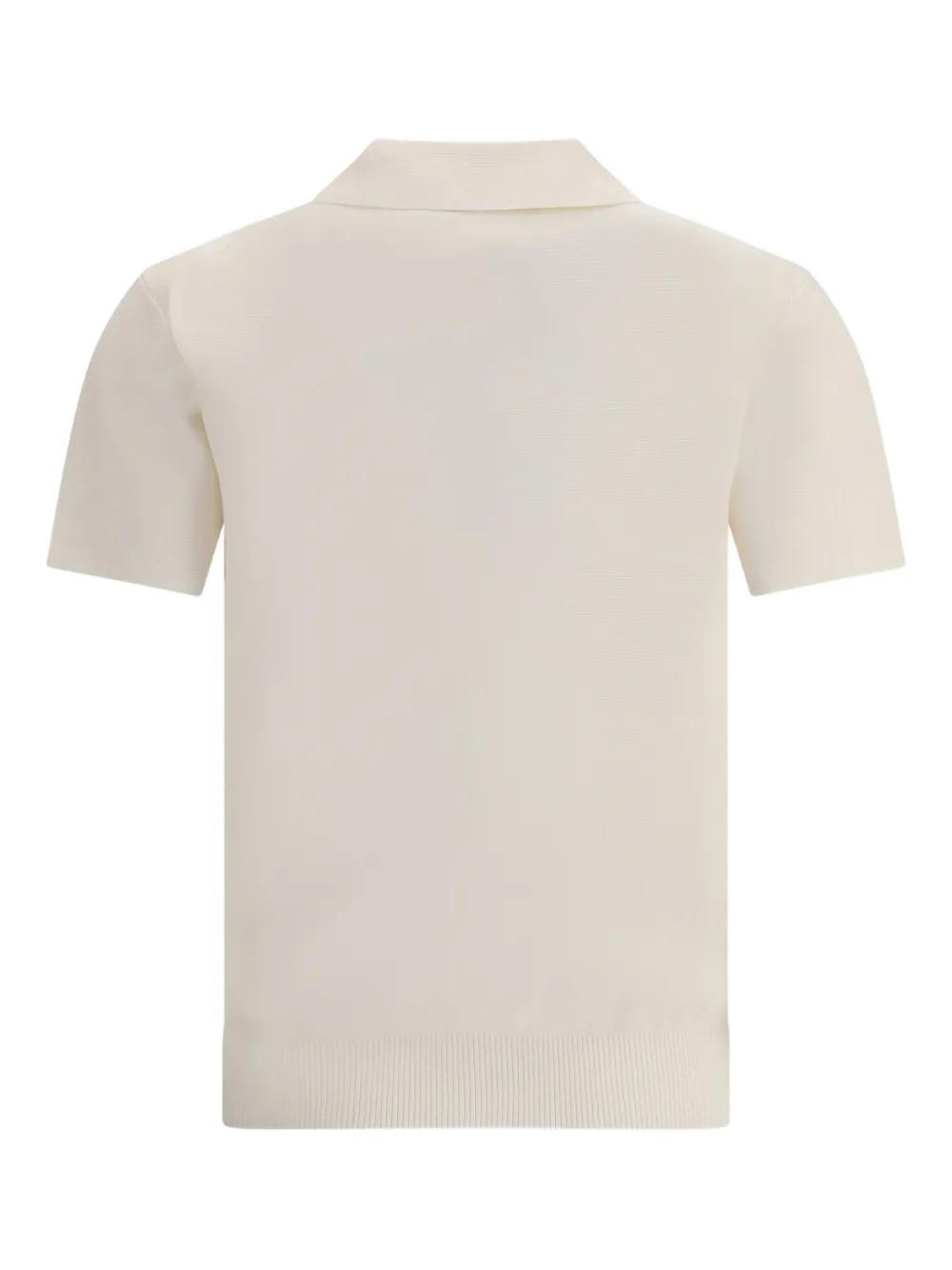 cream polo collar front zip fastening short sleeves ribbed hem