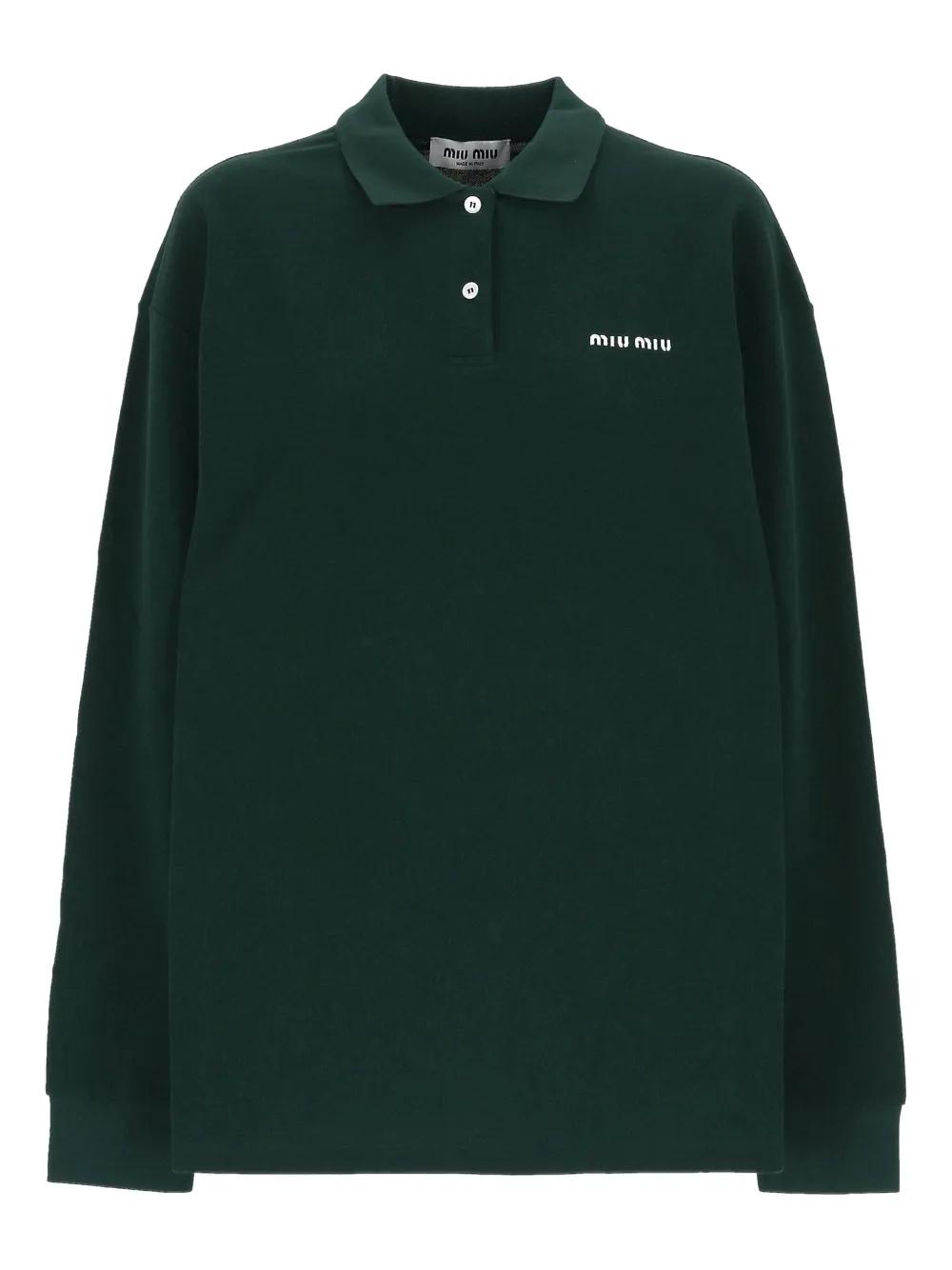 Miu Miu logo-embroidered polo shirt - Green
