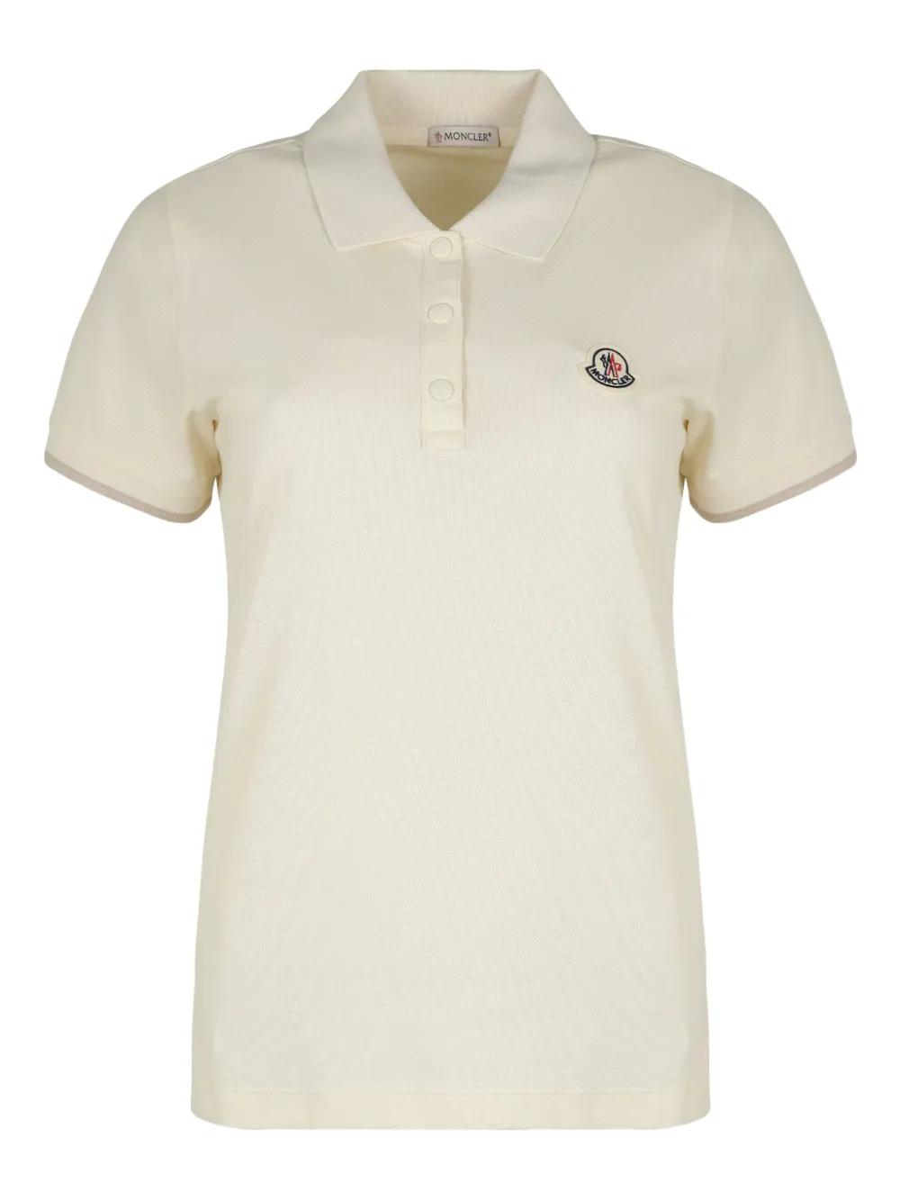 cream white logo patch short sleeves button fastening ribbed cuffs ribbed collar